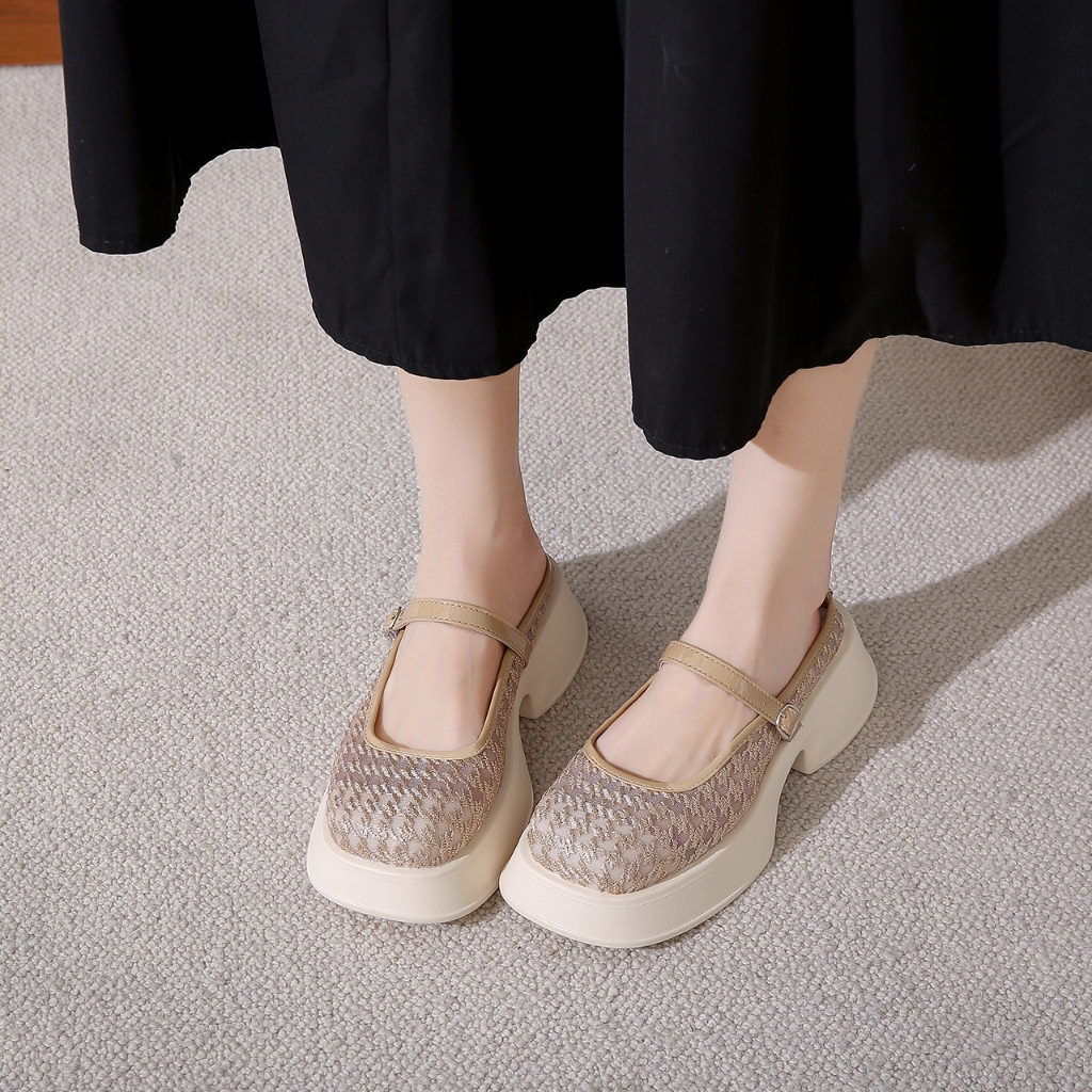 Findal Sandal Wanita Mules Wedges 4Cm Mary Jane Kasual Latte 36-40 Di-090