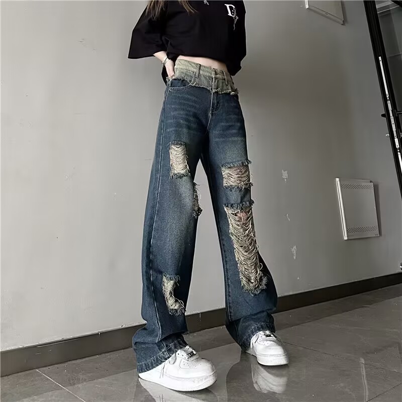 KATERMEN Jeans Wanita - Jeans Robek - Celana Denim Longgar - Jeans Pinggang Tinggi untuk Wanita