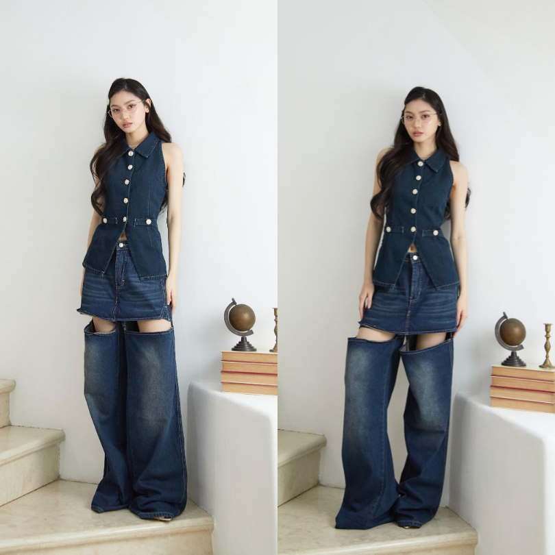 LADOUCE - Drew High Waist Baggy Jeans Celana Panjang Denim Wanita