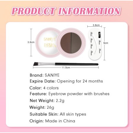 BM SANIYE E028 2 Warna Kosmetik Alis Eyebrow wder Palet Bedak Alis Dengan Kuas Kosmetik Rias Tahan Air bedak