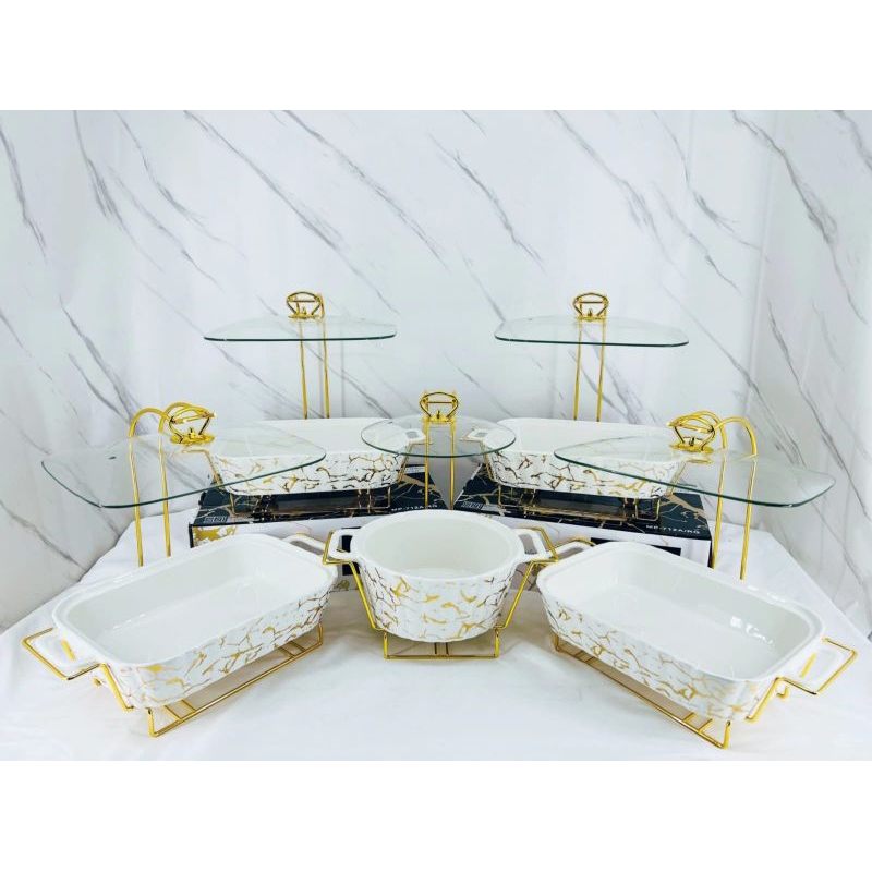 Prasmanan Pesta Keramik Marble Fiorenza Set 5 Buah (Free Packing Kayu)