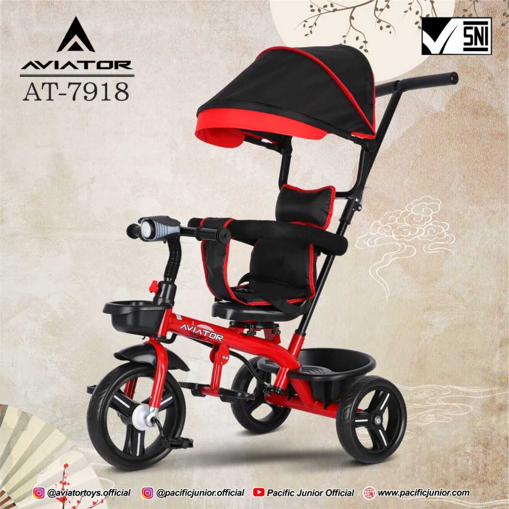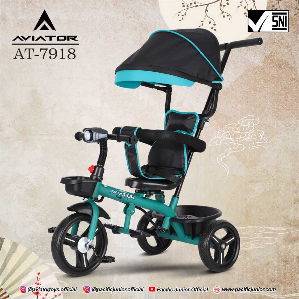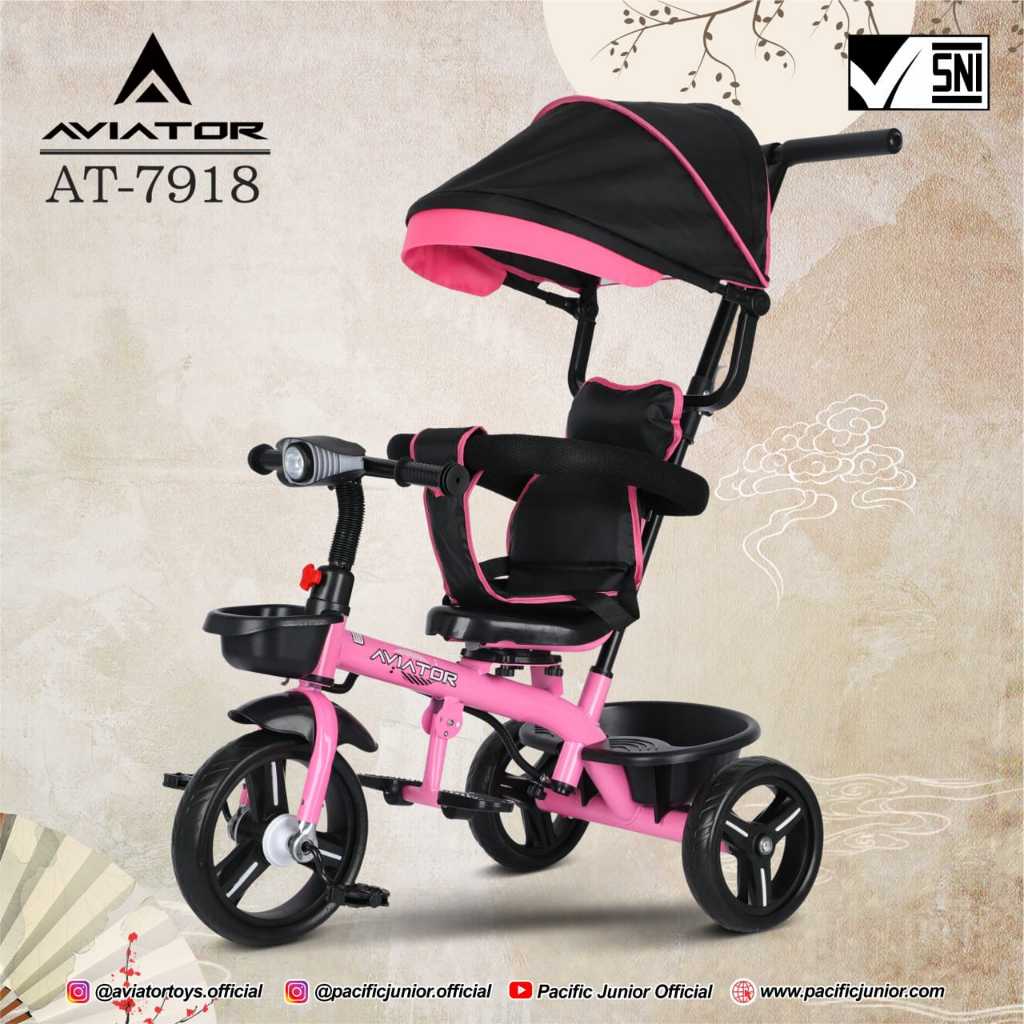 Sepeda Anak Roda Tiga Original Aviator At 7918 (4 In 1) Di Lengkapi Seatbelt, Kursi Putar