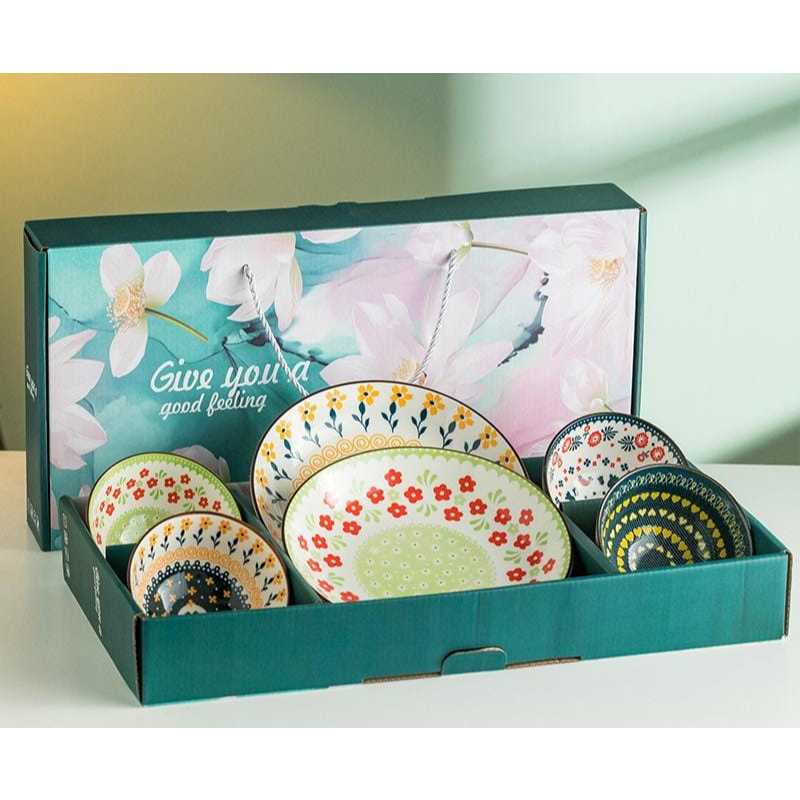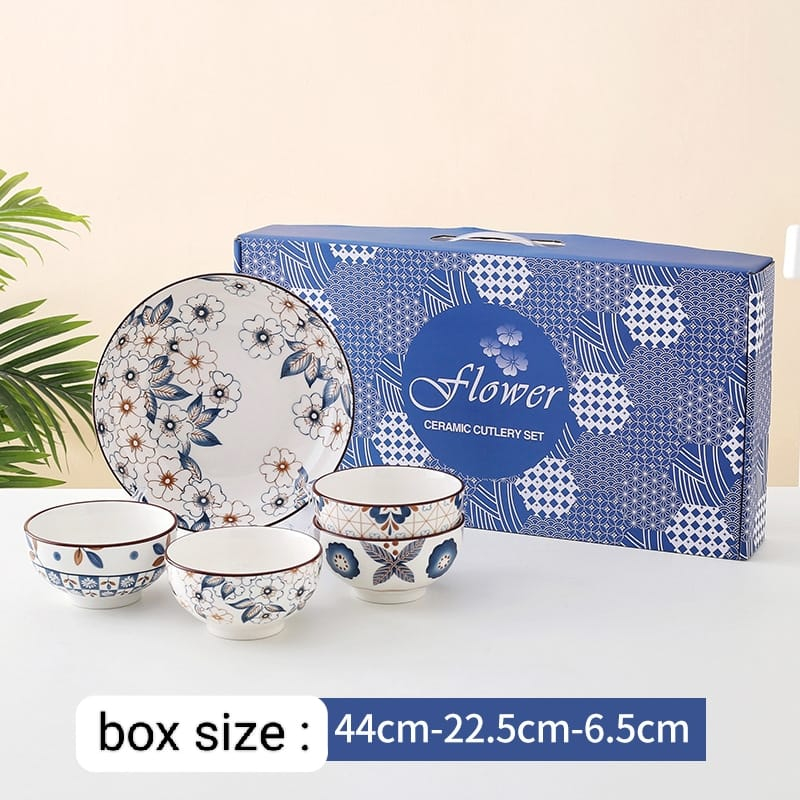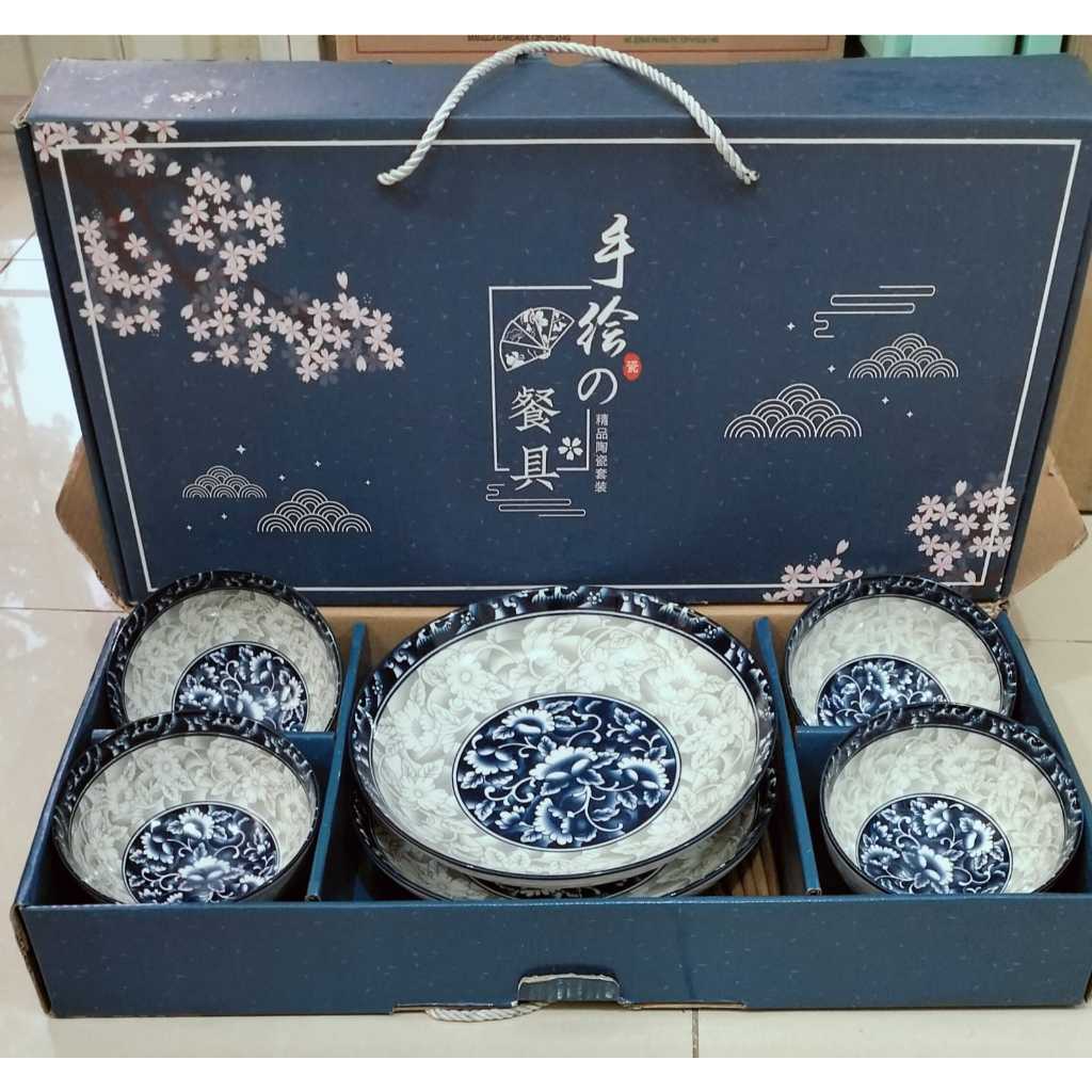 Blue Flower Souvenir Piring Dan Mangkok Jepang Set Hand Painted Japanese Plate And Bowl Set Wedding Gift Box Hampers Kad