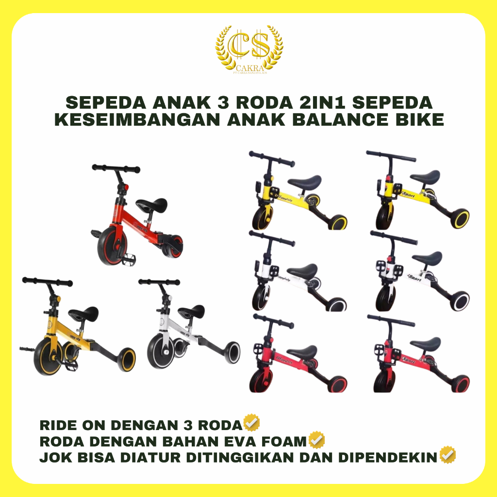 Sepeda Anak 3 Roda 2in1 Sepeda Keseimbangan Anak Balance Bike Ride On Anak Push Bike