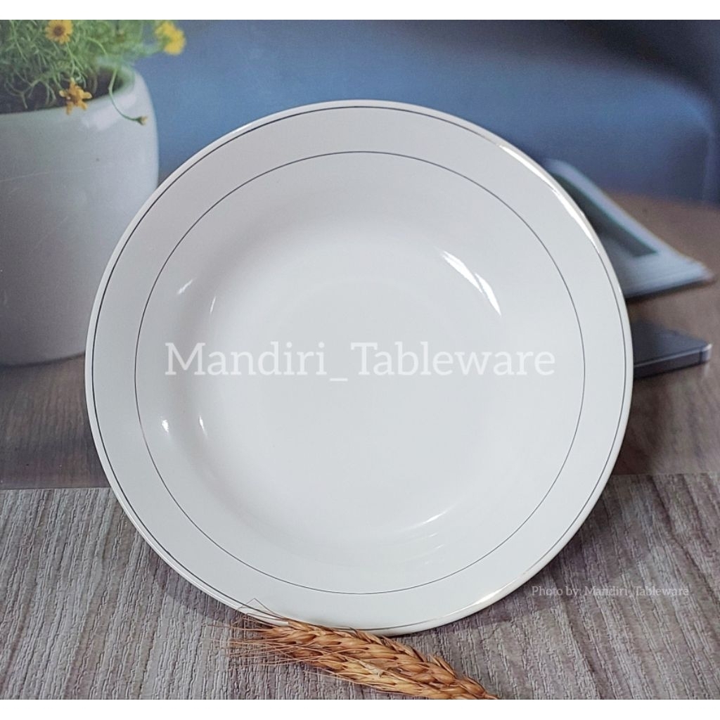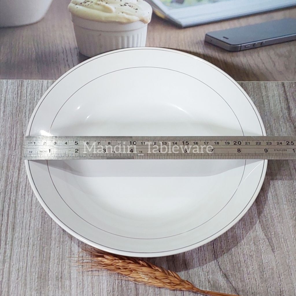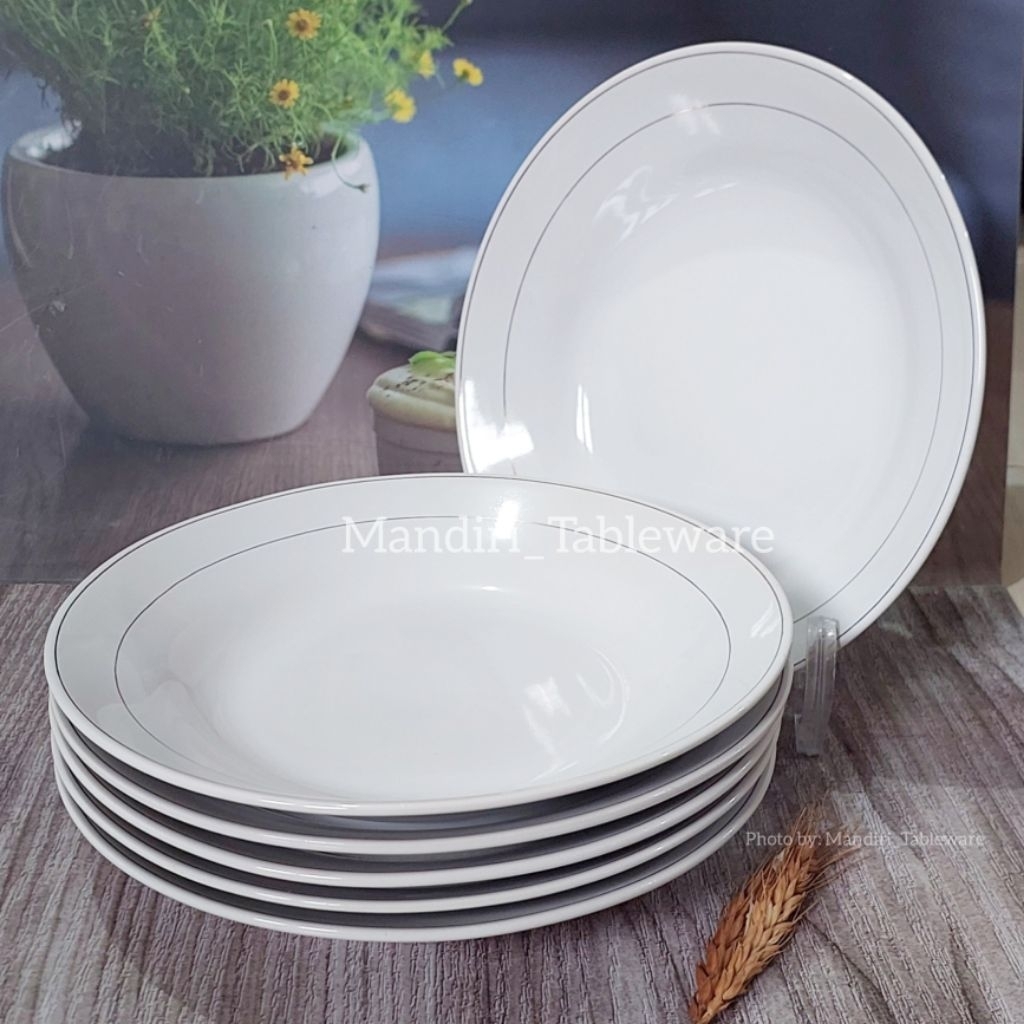 6 Pcs Piring Makan Cekung Keramik Ukuran 23 Cm | Line 2 | Tebal | Best Quality (Sb)