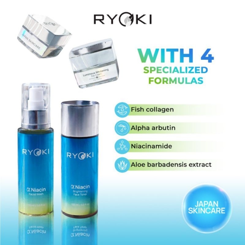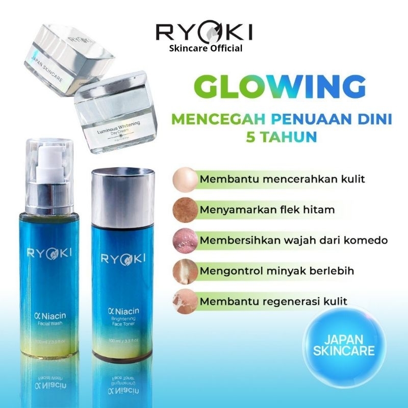Ryoki paket skincare pemutih wajah perawatan muka cream glowing penghilang bekas jerawat mengatasi flek hitam brigh