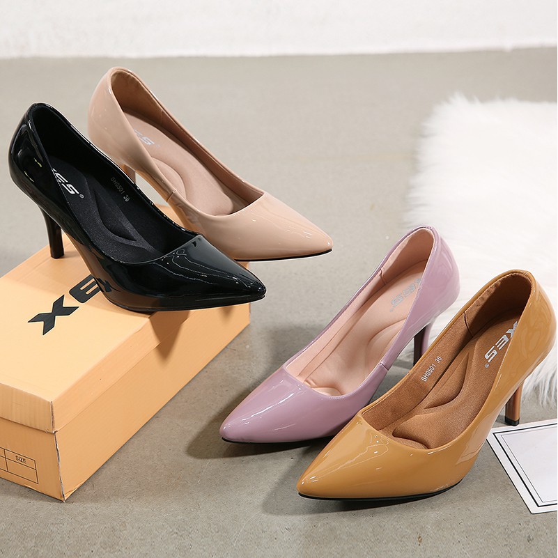 Xes Sh0501 / Sepatu Wanita High Heels Glossy Import 7Cm