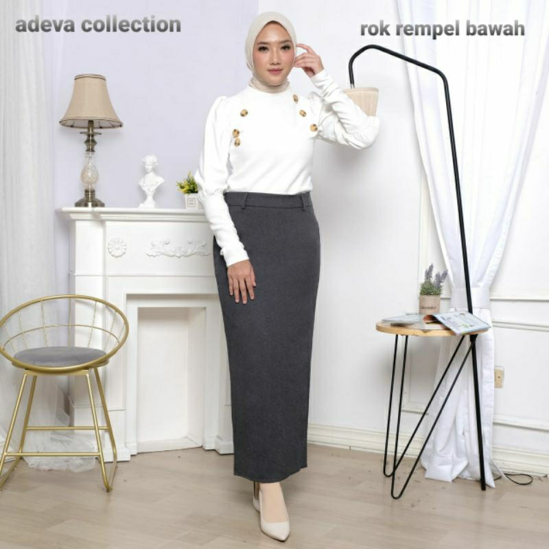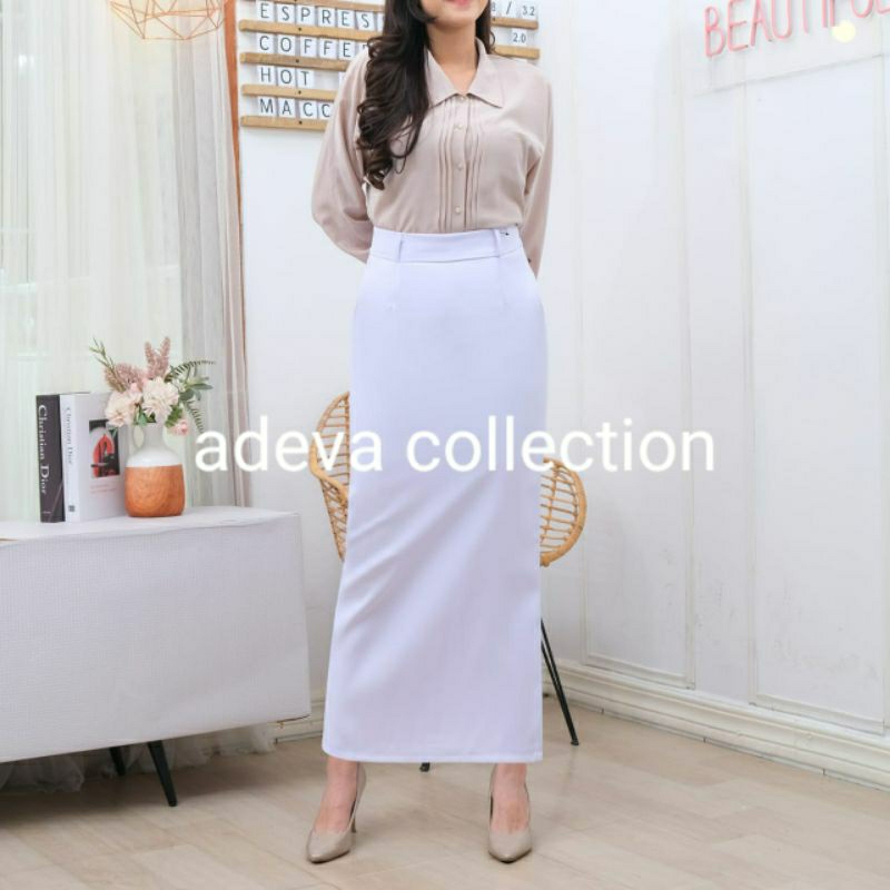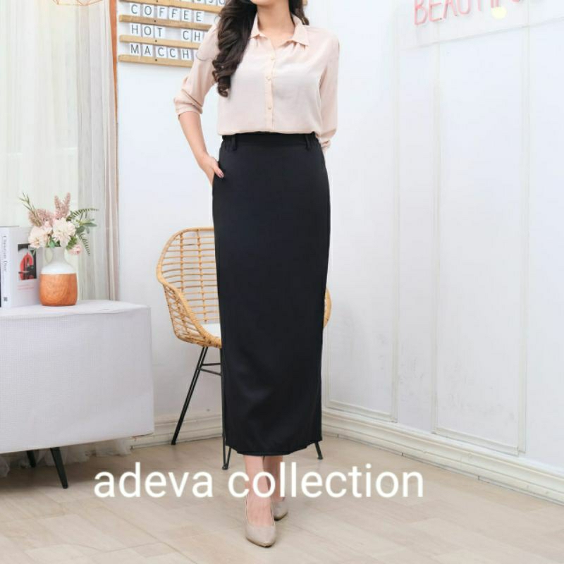 Rok Kerja Wanita Panjang Span Kantor Hitam Rempel Belakang