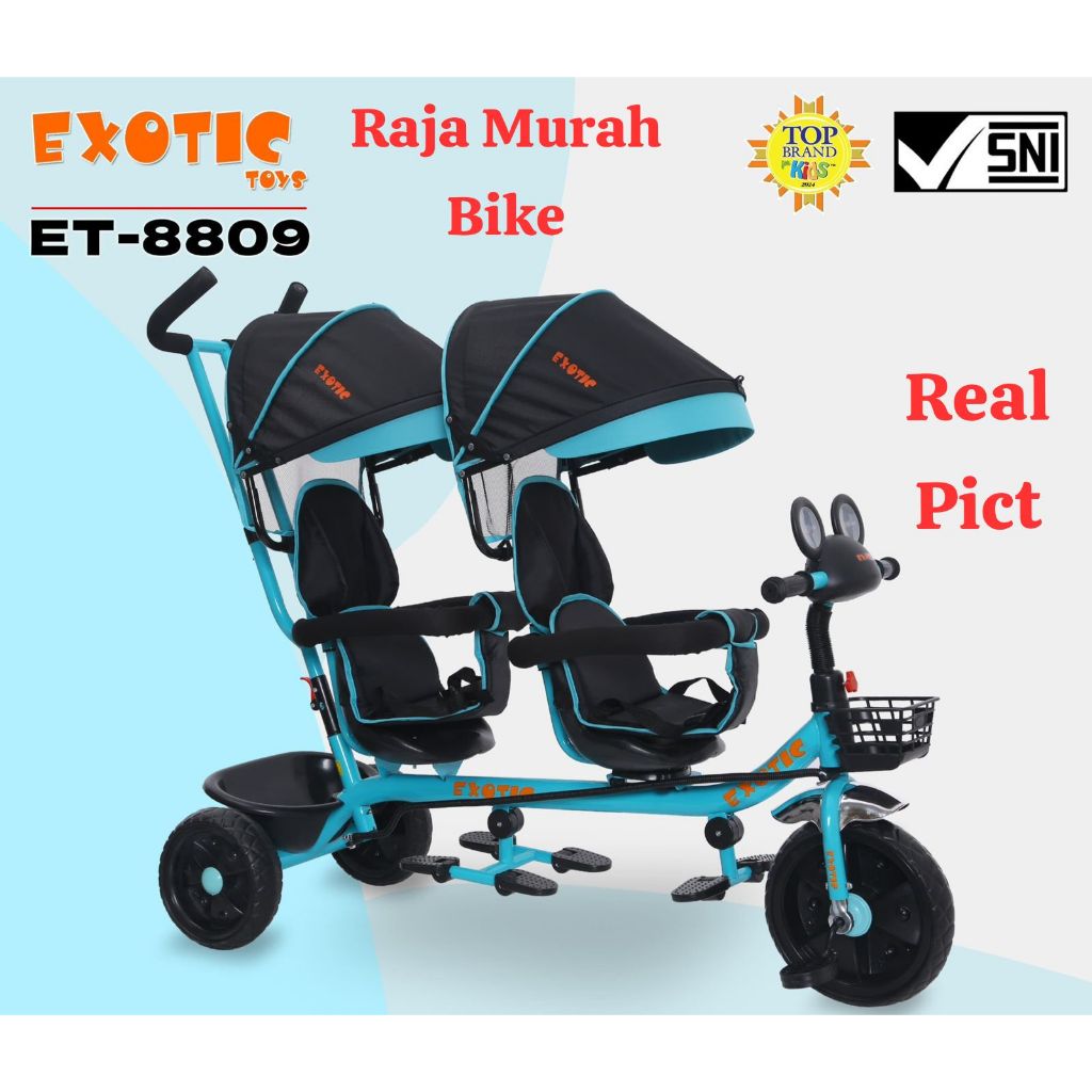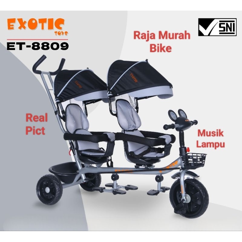 Sepeda Anak Roda Tiga Kembar Exotic Et-8809 Sepeda Roda Tiga 2 Kursi Exotic Et8809