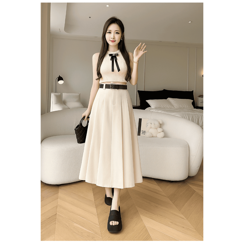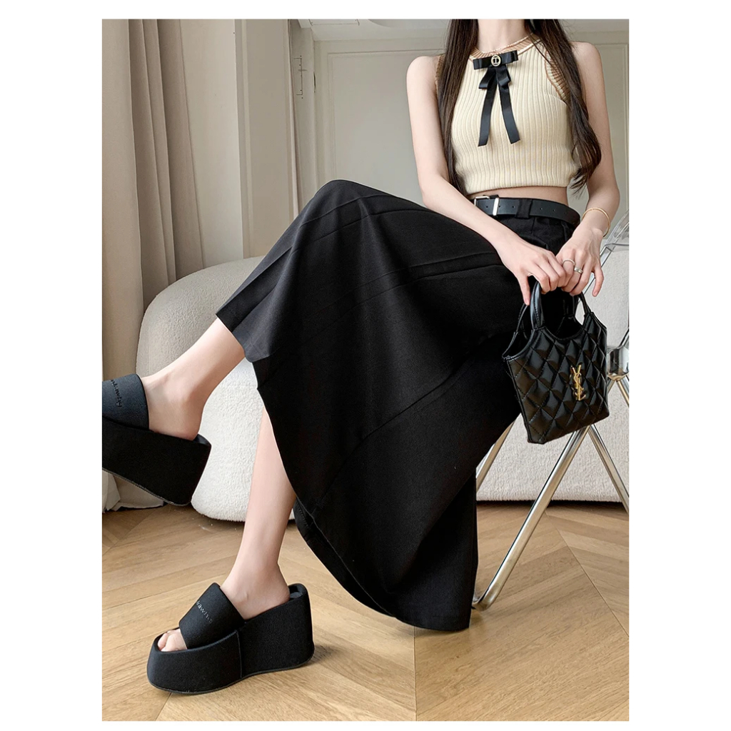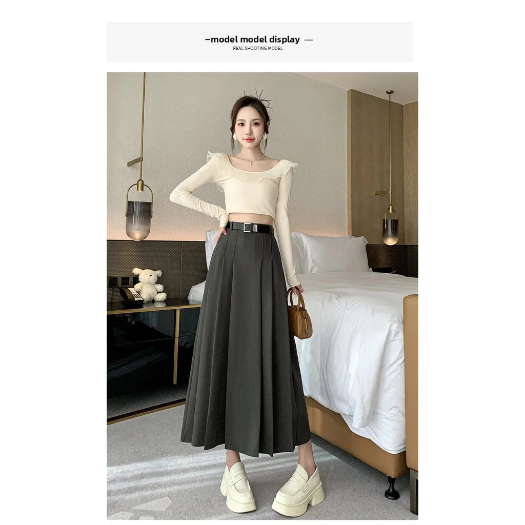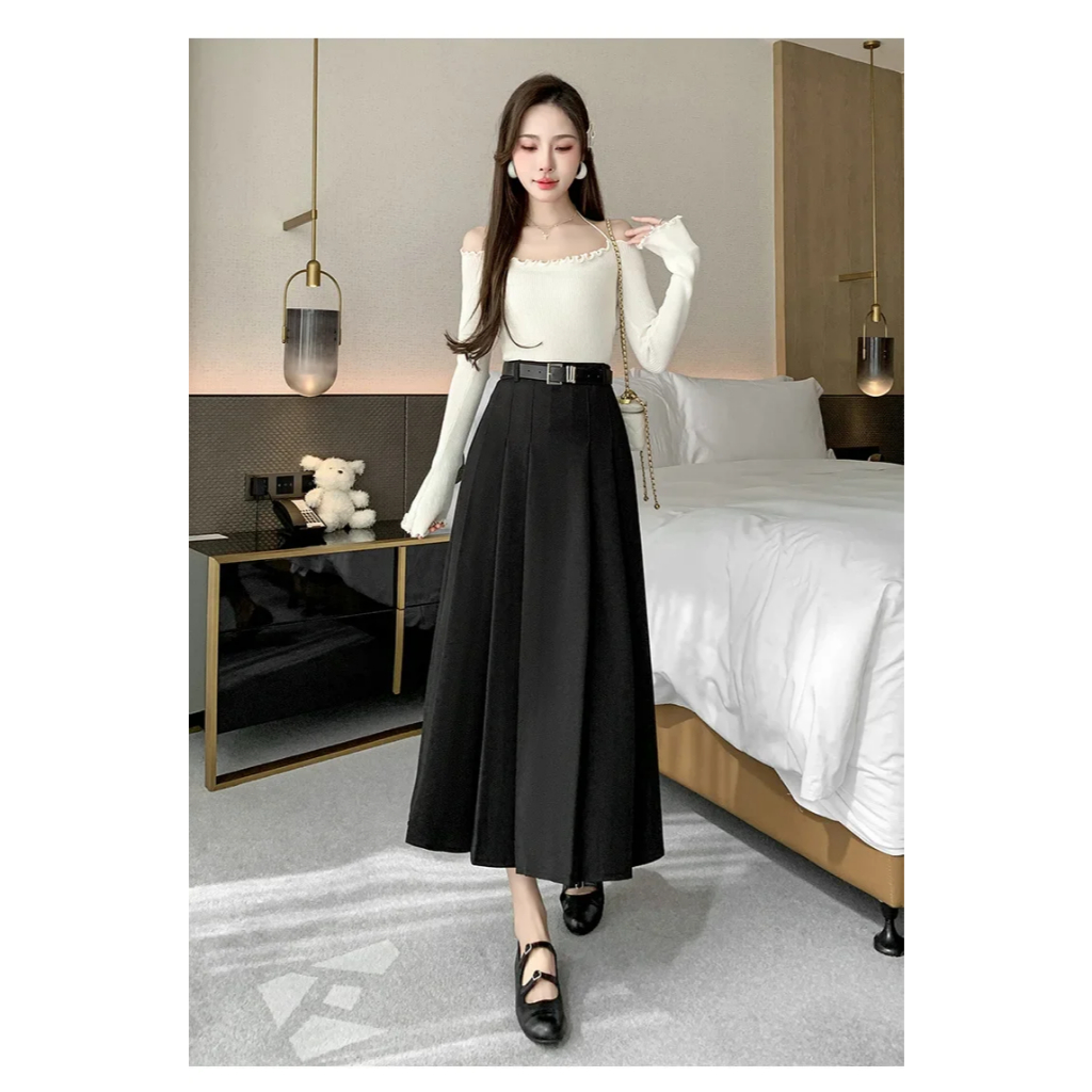 Rok Kerja Kuliah Wanita Kantor Formal Korean Style - midi Pleated skrit Rok Panjang Wanita los