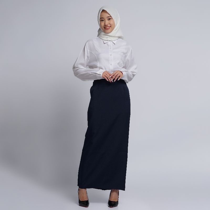 Rok kerja wanita kantor terbaru reguler fit resleting lyester premium stretch imrt hitam milo