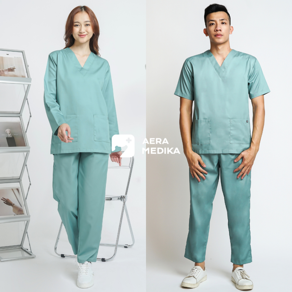 XXL - Set Baju Jaga / Baju OK / Baju Perawat / Dokter / Scrub Medis / Seragam OKA - AERAMEDIKA
