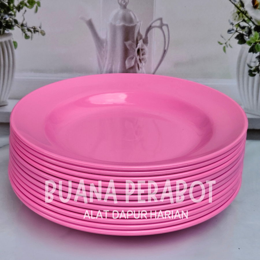 Termurah 12 Pcs Piring Makan Melamin Pink Bahan Tebal Diameter 23 Cm Model Bulat