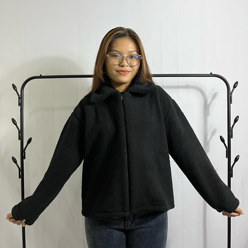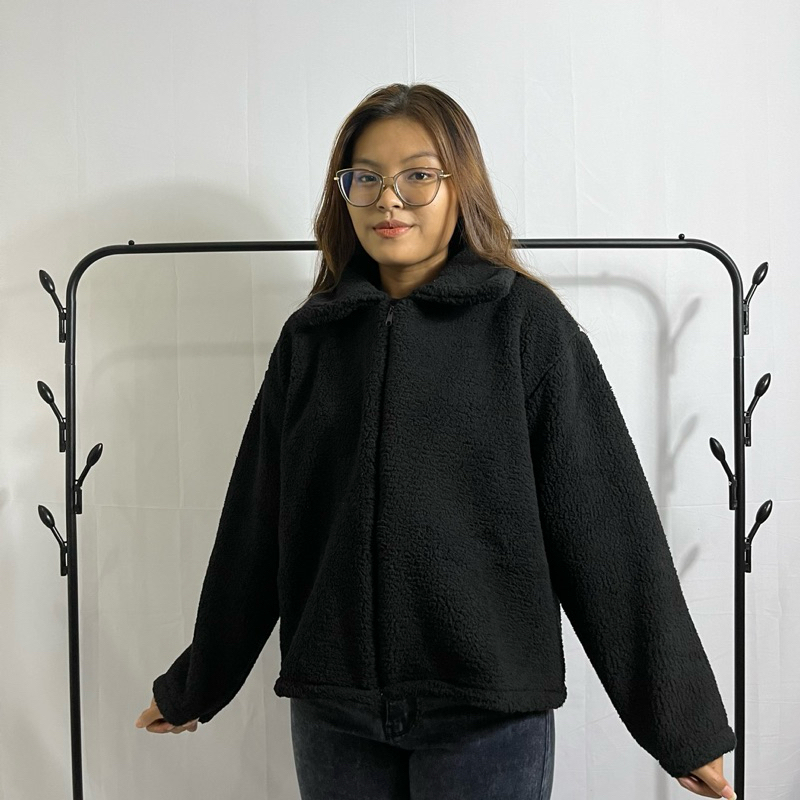Sweater Jacket Bulu Zip Crope Sherpa Bulu Domba