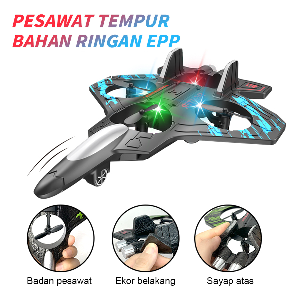 Pesawat Terbang Mainan Pesawat Terbang Anak Laki Laki Stunt Remote Control Led Glider Airplane Foam 2.4G Remote con