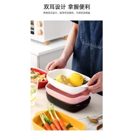 Satuan Piring Saji Porselen Keramik Cantik Dengan Gagang Tahan Panas / Ceramic Baking Tray Oven Microwave Nordic Style