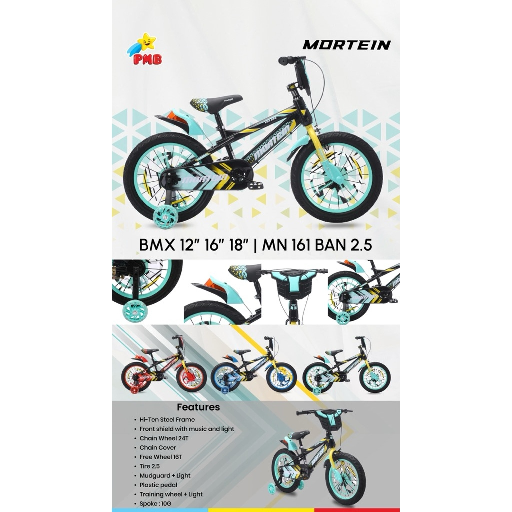 Sepeda Anak Bmx 12 16 18 Inch Pmb Mortein 161 (Musik+Lampu) Ban Pompa 2.50