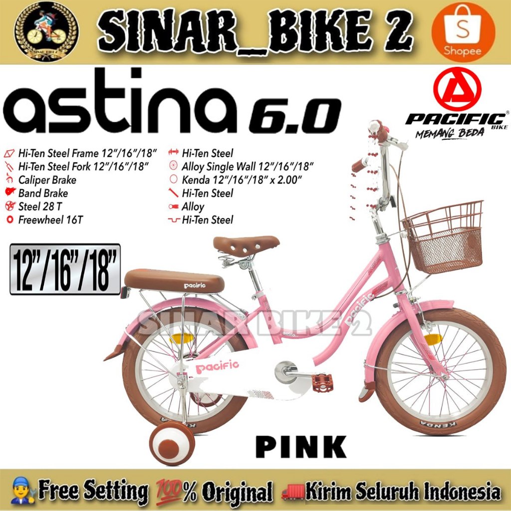 Sepeda Anak Perempuan Pacific Astina 6.0 Ukuran 12 16 18 Inch Keranjang Usia 2-8 Tahun