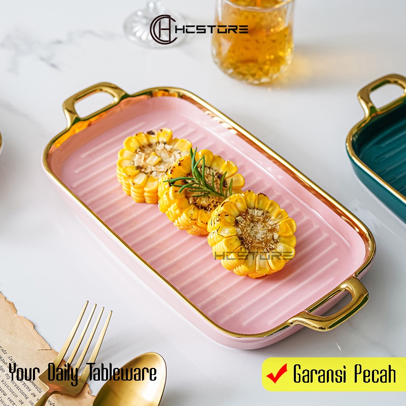 Piring Saji Keramik Persegi Panjang List Sultan Mewah Ukuran 30Cm Microwave Safe
