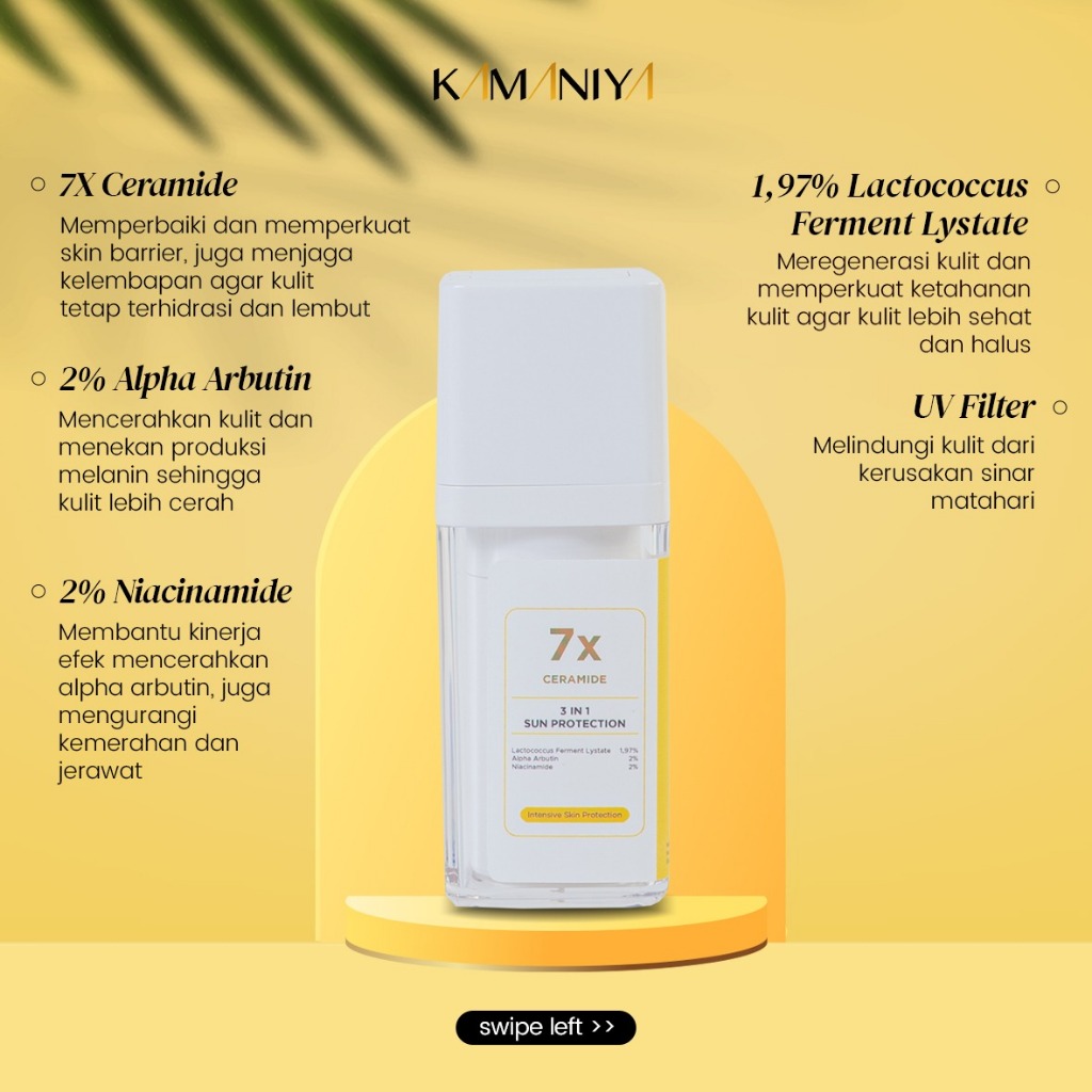 KAMANIYA 3 in 1 Sunscreen Protector 7X Ceramide Brightening UV Sunscreen SPF 15