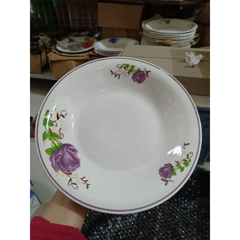 6Pcs Piring Makan Sop 9,25 Orchid Batu Keramik Mawar Biru Hijau Ungu Pink Cantik Pesta