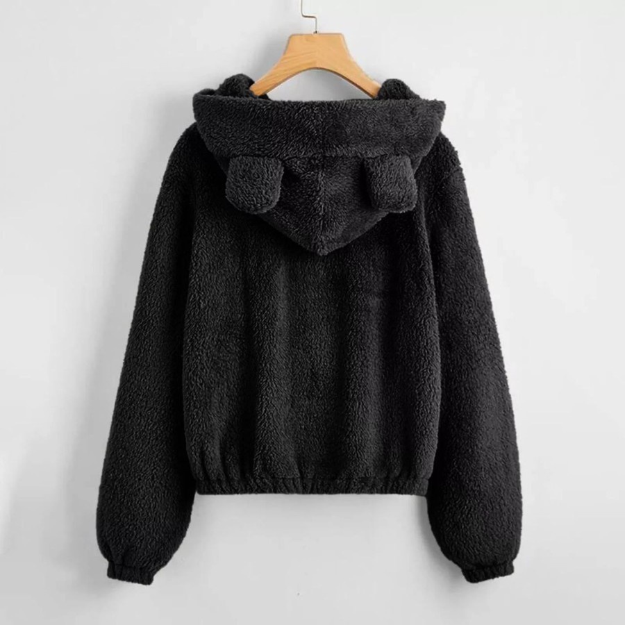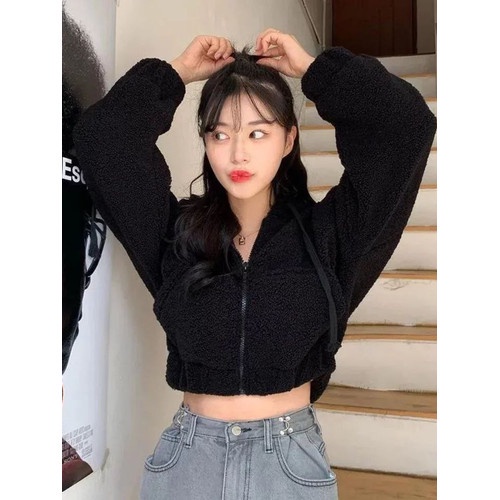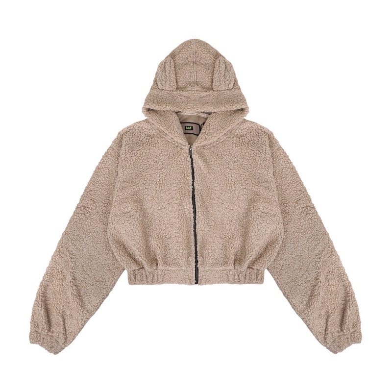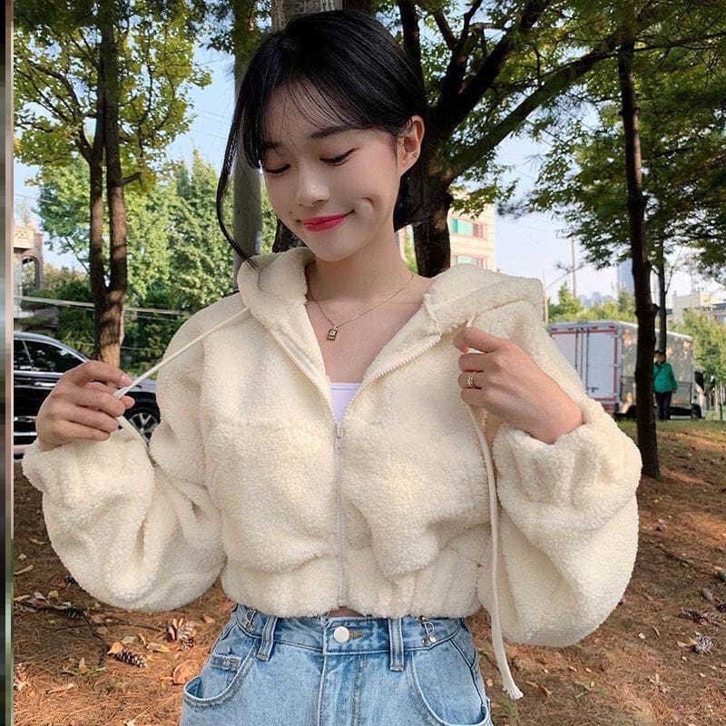 Sherpa Crop Zipper Hoodie Bulu Wanita / Jaket Crop Sherpa Wanita / Hoodie Bulu BerBIAYA Bear Angsa Domba Resleting