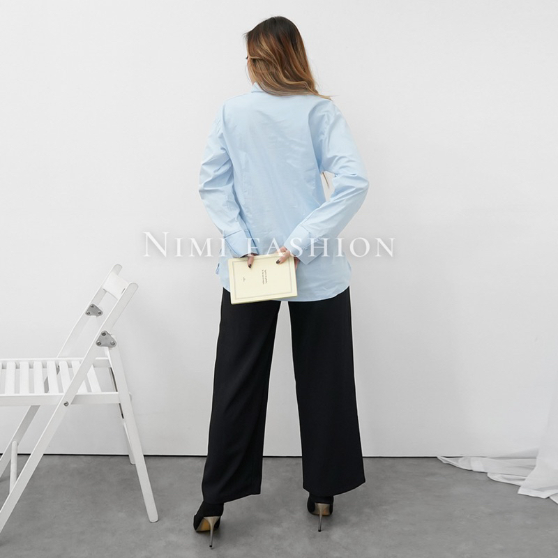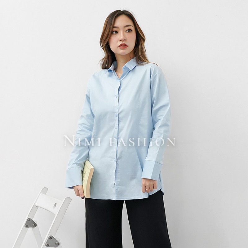 NIMI - Kemeja Biru Formal Wanita Baju Kemeja Kerja Biru los wanita lengan panjang