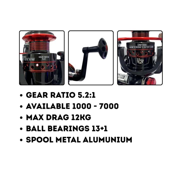 1 Set Paket Alat Pancing Joran + Reel Joran Pancing Spinning Fishing Rod Hitam Merah High Carbon &