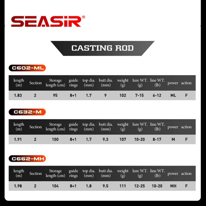 SEASIR Joran Pancing Cast X Serat Karbon 1,83M-2,1M Cincin Pemandu Zirkonia Berat Umpan 7-25G 9KG