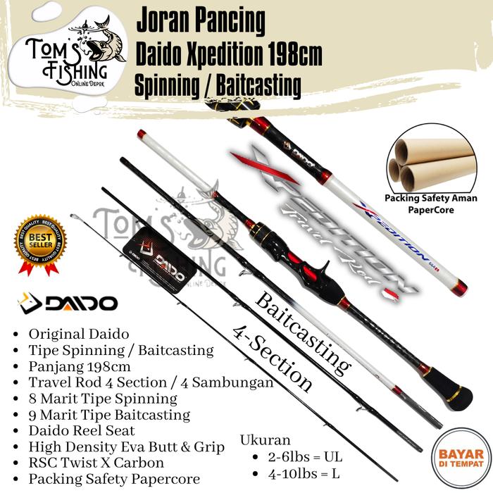 Joran Pancing UL Daido XPEDITION 198cm 4 Section (Spinning / Baitcasting) Carbon Solid Murah - Toms