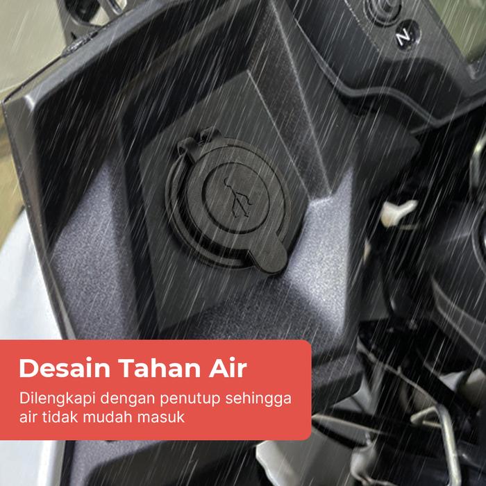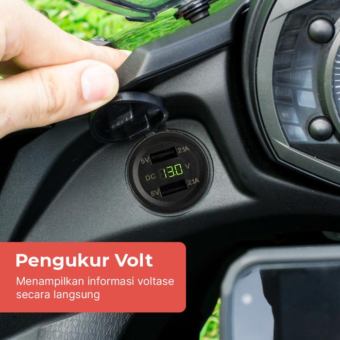 USB Charger Sepeda Motor Mobil 2 Port LED Digital Display Anti Air Casan HP Charging Dual Adapter