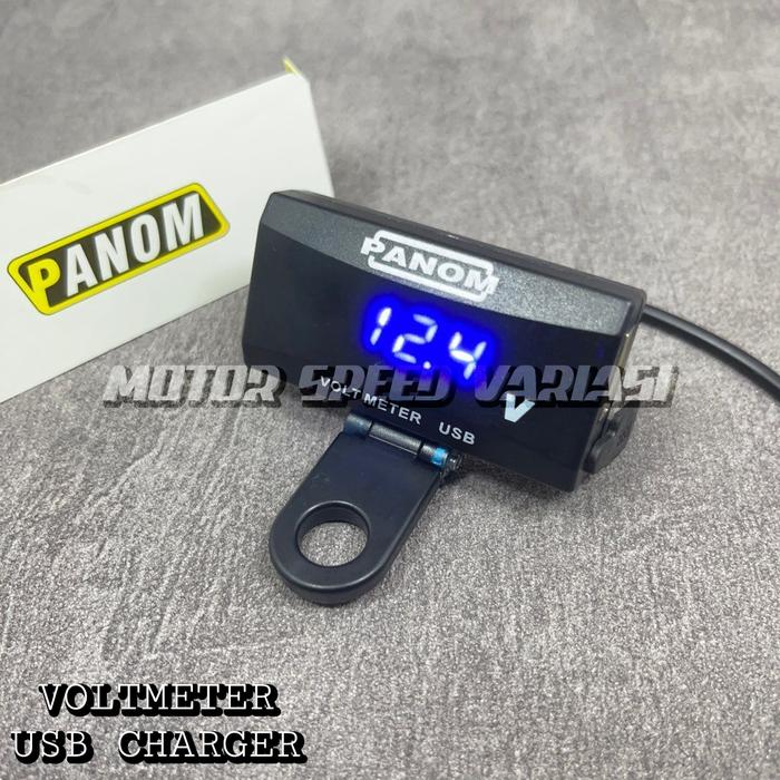 Voltmeter + USB Charging 5V 2A Breket Spion Panom Voltmeter motor usb charger