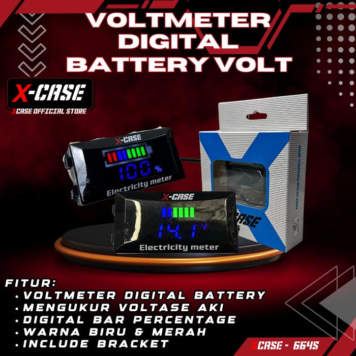 X-Case Voltmeter Digital Battery Bar Pengukur Voltase Listrik Motor Universal 6645 - BIRU