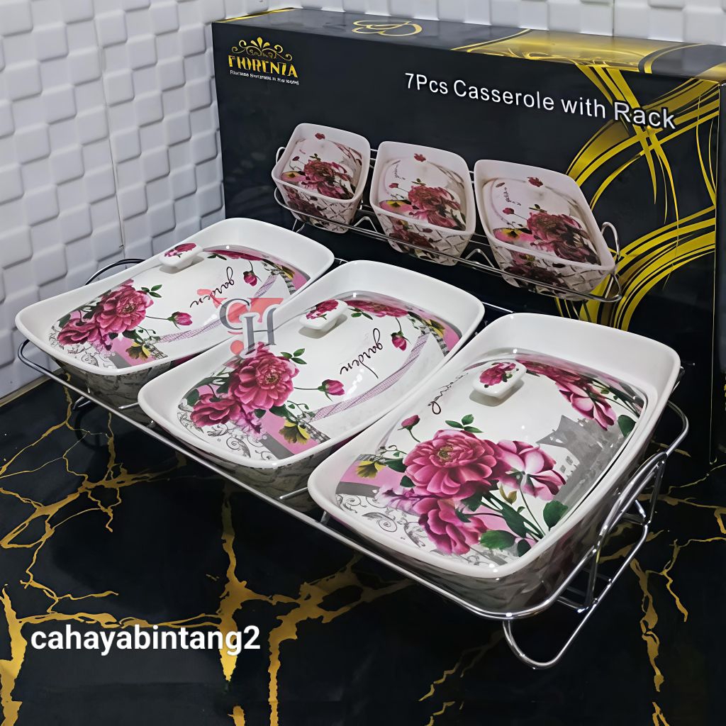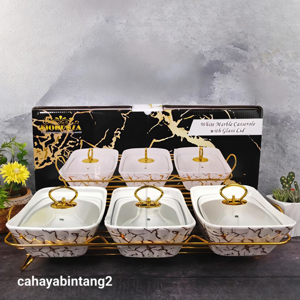 Prasmanan Tripel/ Wadah Saji Gandeng 3 Keramik Marble Fiorenza Set 3Pcs 988