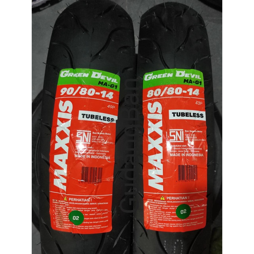 ( 2 BAN - RING 14 ) PAKET HEMAT GREEN DEVIL MAXXIS MA-G1 (uk 80 90 100 ) FREE P3NTIL TUBELESS