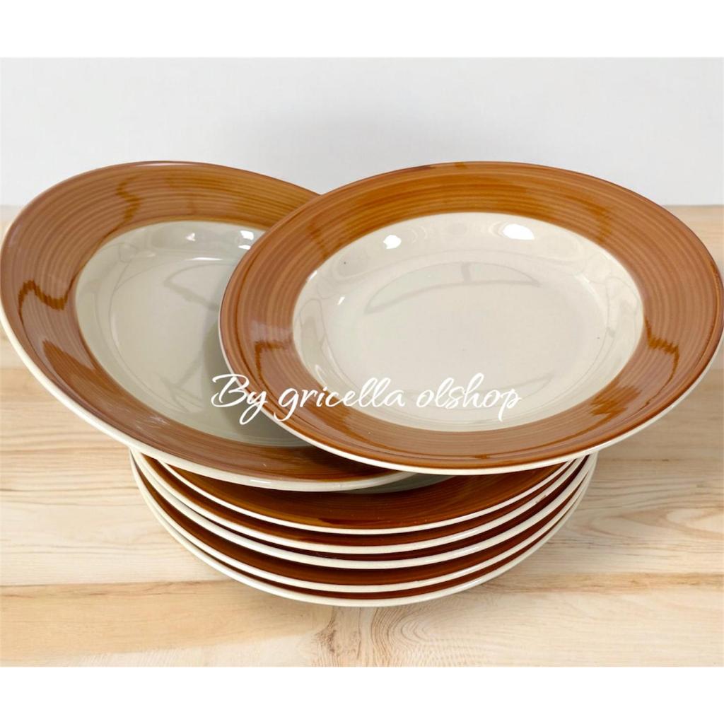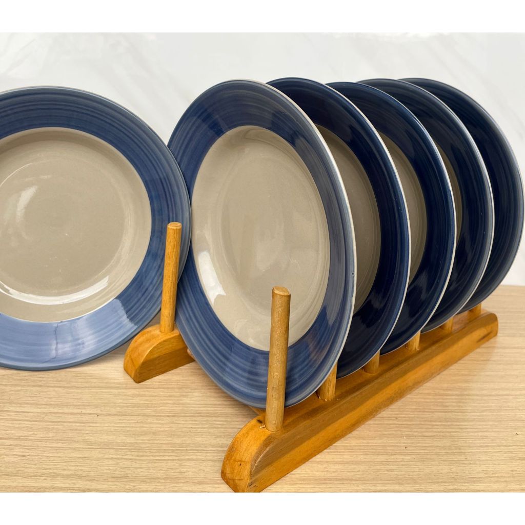 Promo 6 Pcs Piring Makan Keramik Lucky Lis Biru Diameter 8,5 Inchi / 21,5 Cm Terlaris
