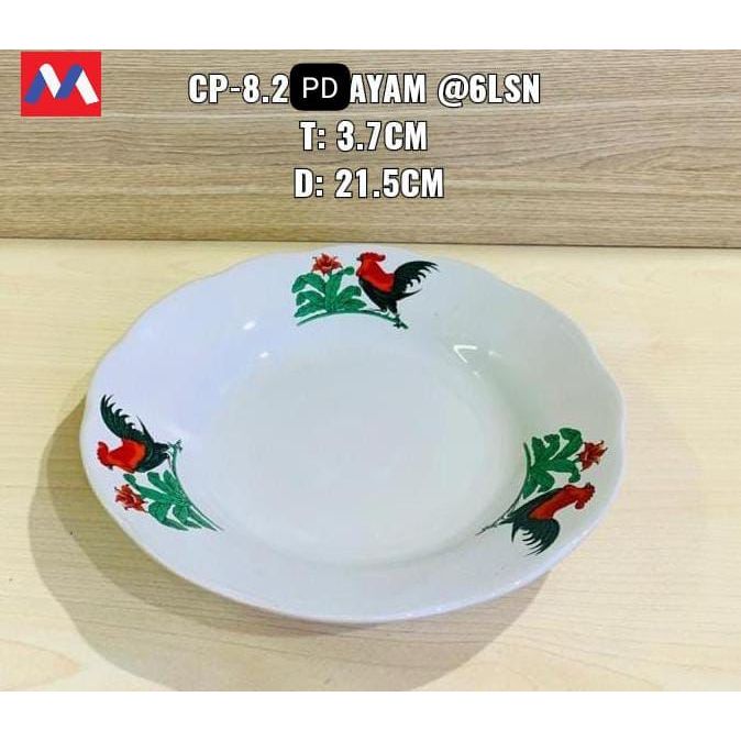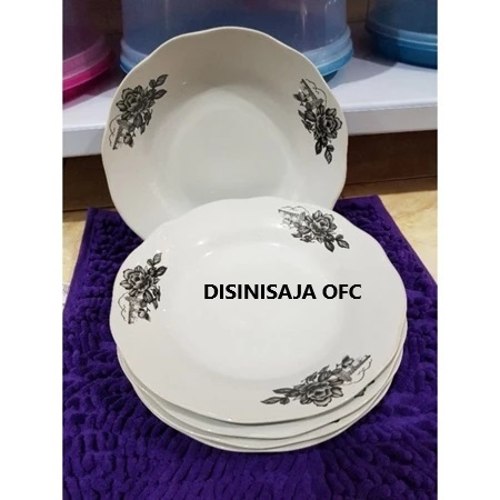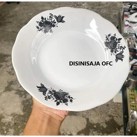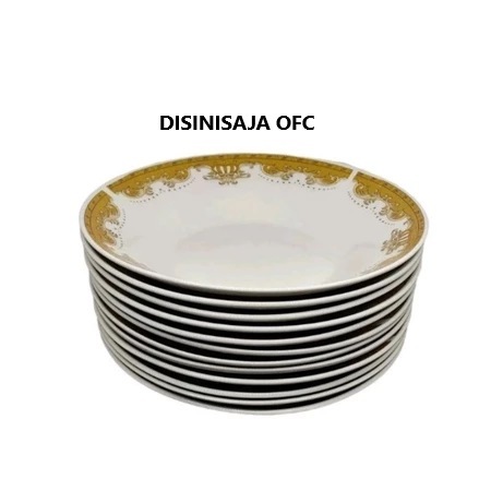 Piring Makan Keramik Isi 1 Lusin / Piring Mahkota / Piring Ayam Jago / Piring Roseblack / Piring List Coklat