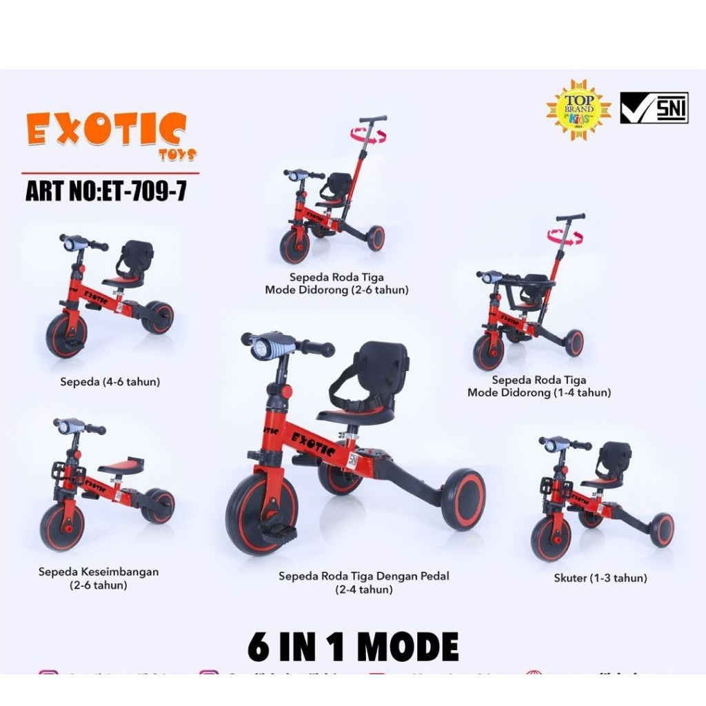 Sepeda Anak Bayi Balita Roda Tiga Balance Push Bike Tricycle 2In1 3In1 6In1 Lampu Musik Aviator Exotic Pmb Iora At7905 A