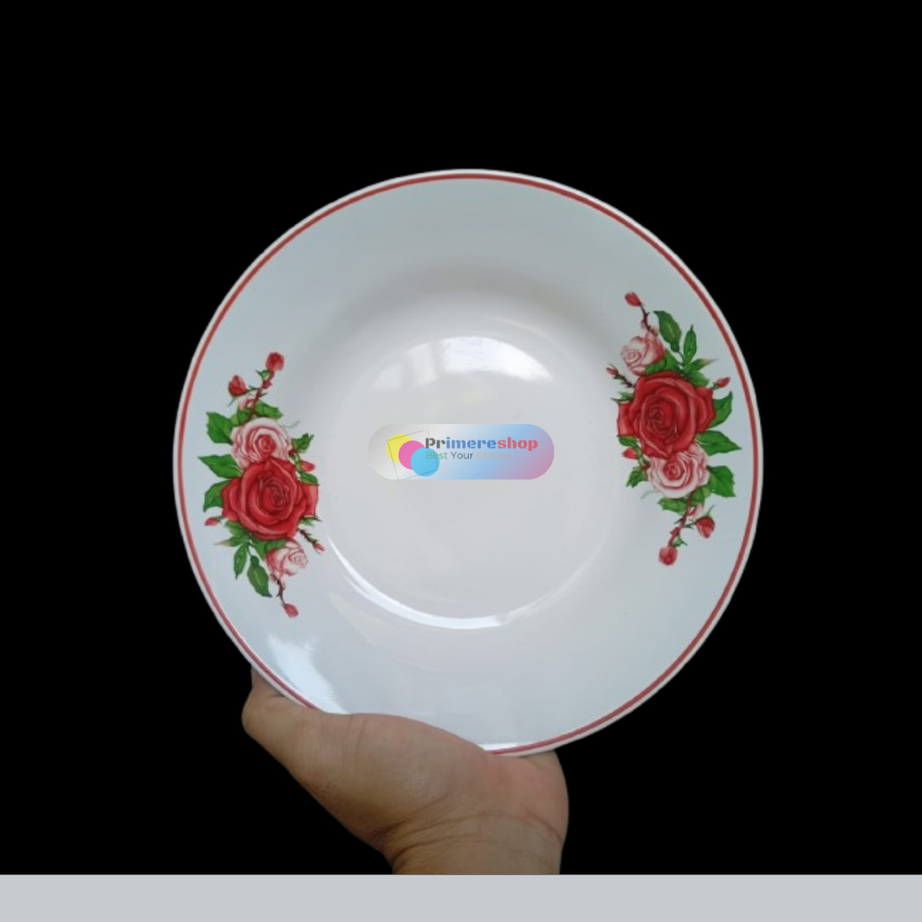 Piring Keramik 1 Lusin 12 Pcs Motif Bunga 9 Inch Packing Kayu