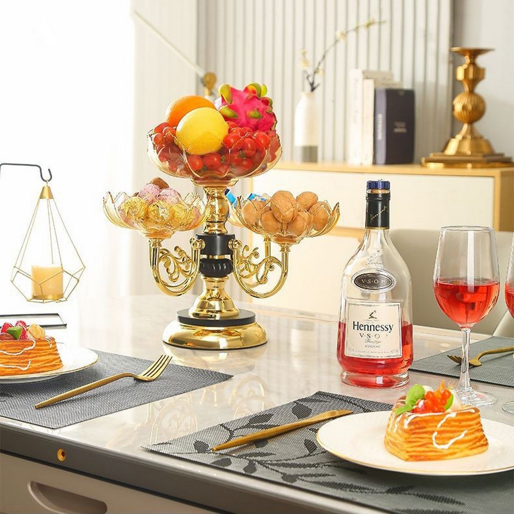 Piring Buah Kristal Eropa Piring Camilan Multi-Lapisan Piring Piring Buah Multi-Lapisan Yang Dapat Diputar