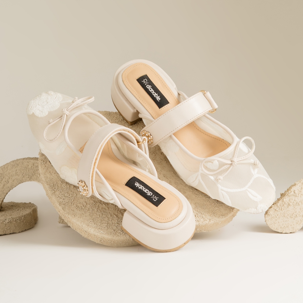 Dianable - Lyria Heels Mules Wanita (Black - Beige - Lace)