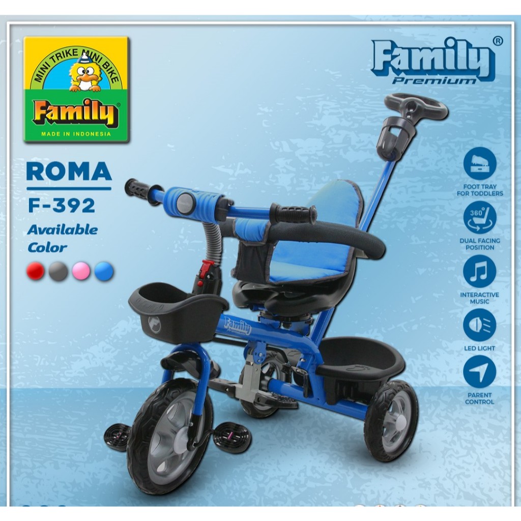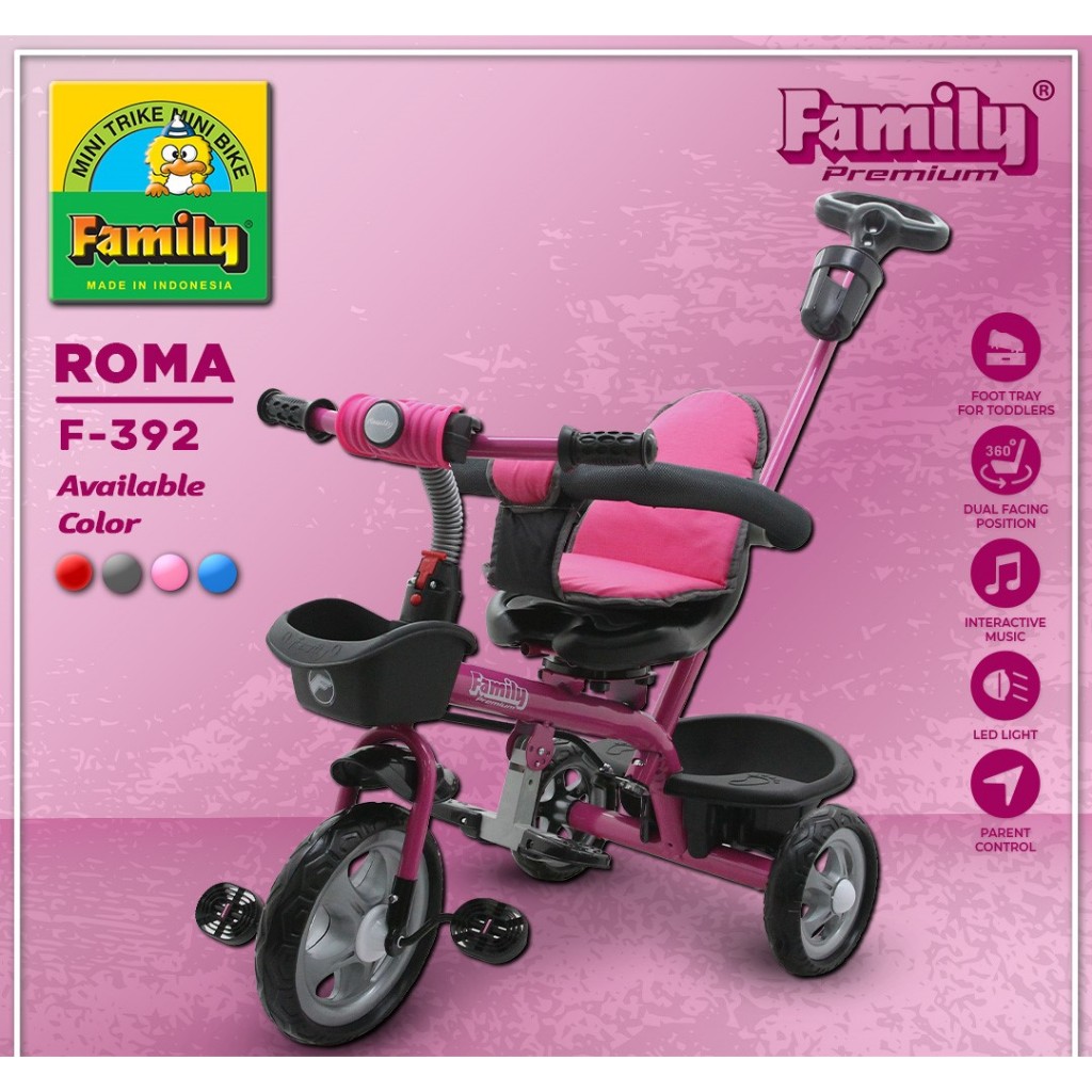 Sepeda Roda Tiga Anak Family F392 Roma Mainan Anak Dengan Dorongan & Pengaman