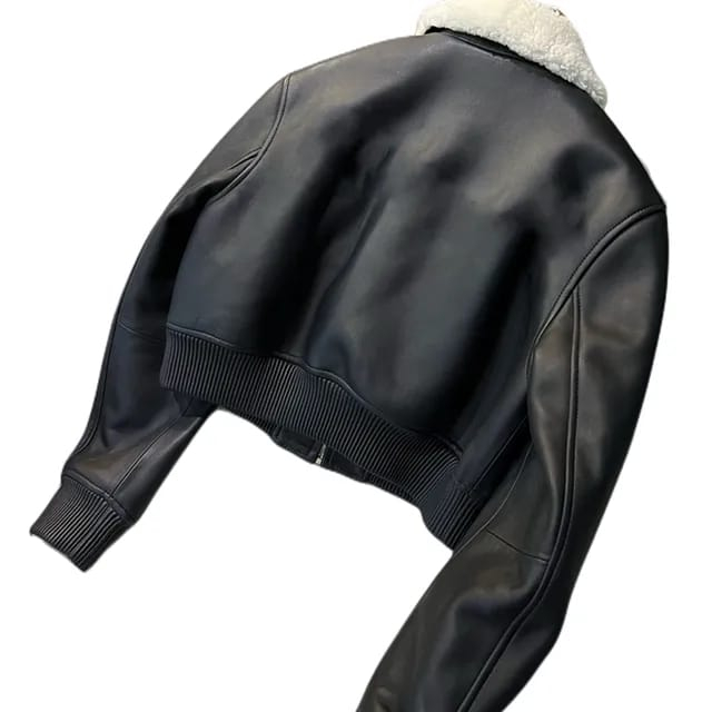 JAKET WOMEN CROP LEATHER KERAH BULU