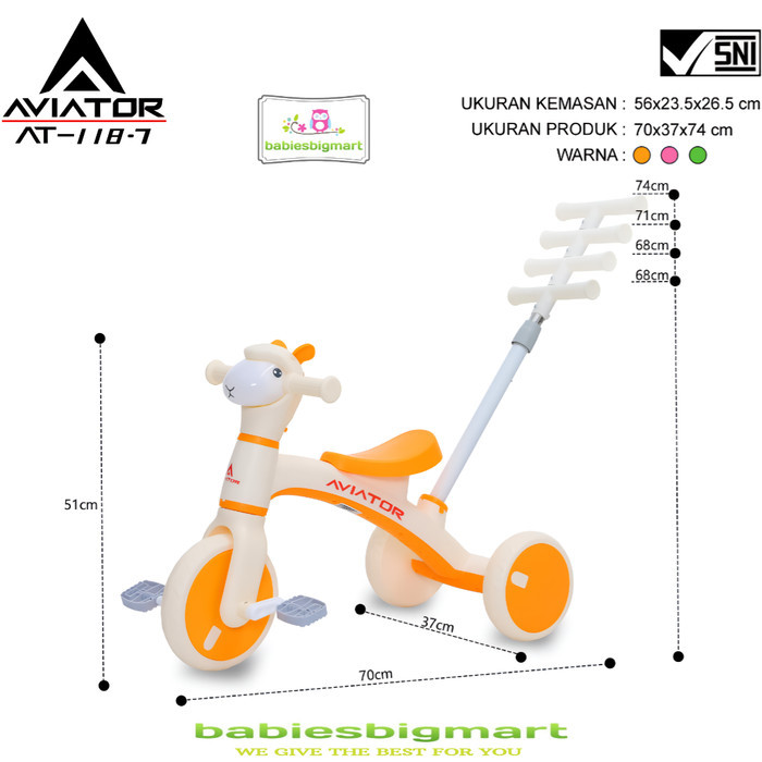 Sepeda Anak Roda 3 Tiga Tricycle Aviator At 118-7 Alpaca 2 In 1 Dorongan Ada Musik Lampu