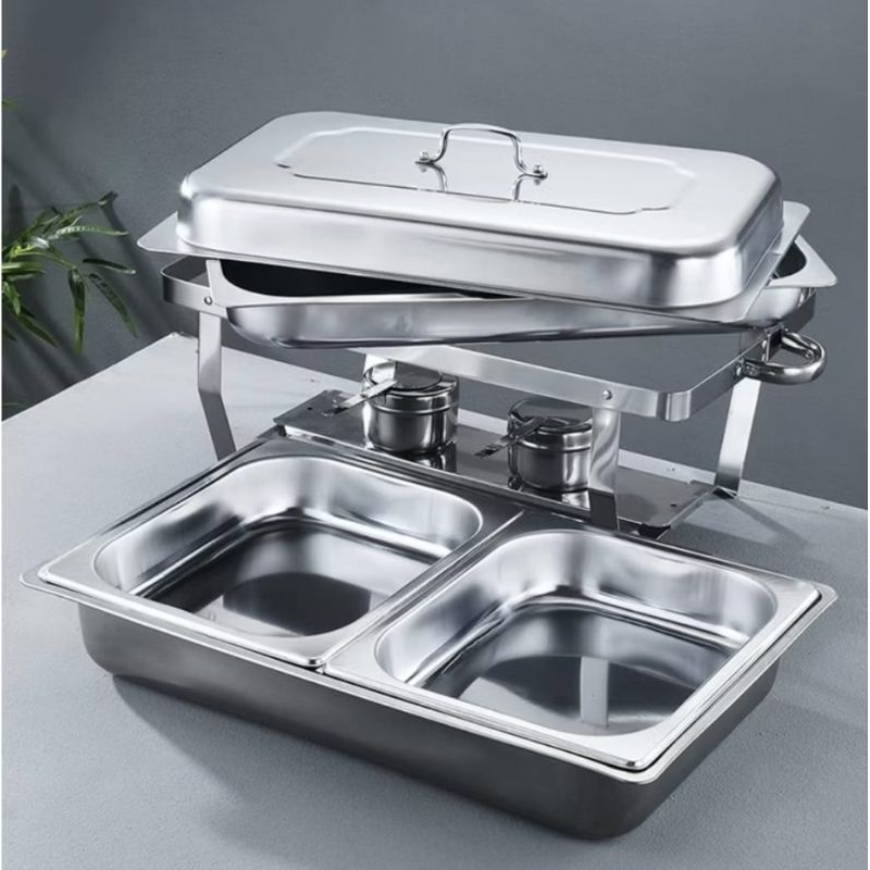 Chafing Dish / Prasmanan Segi Jumbo Paket 5Set (3Set Segi Jumbo 1Tray + 1Set Sekat 2Tray + Sop Bulat 7Lt/32Cm) Bonus 5Pc