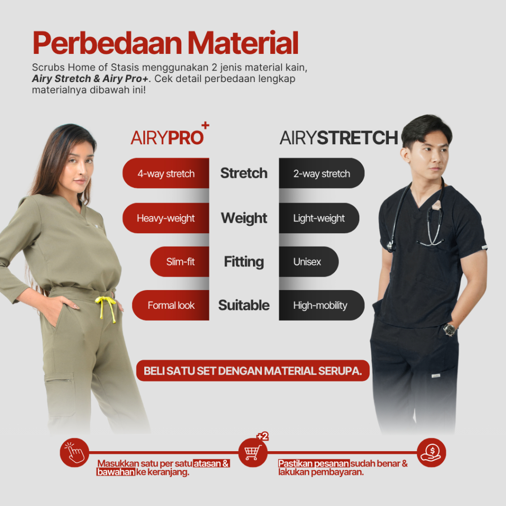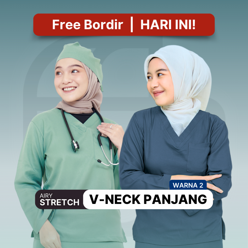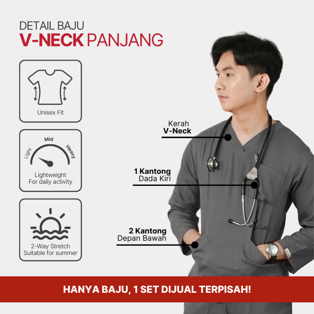 AIRY STRETCH Warna 2 Vneck Panjang Scrub Baju jaga OK - Stasis Medical Dokter Bidan Perawat V Neck Cargo Nakes cu