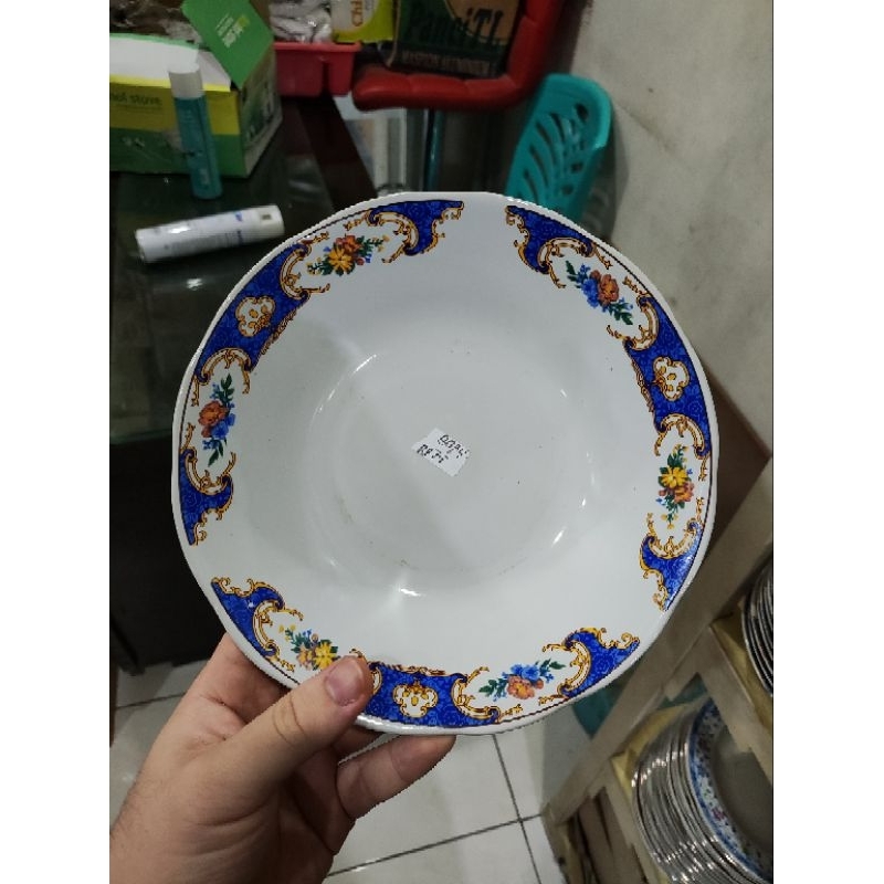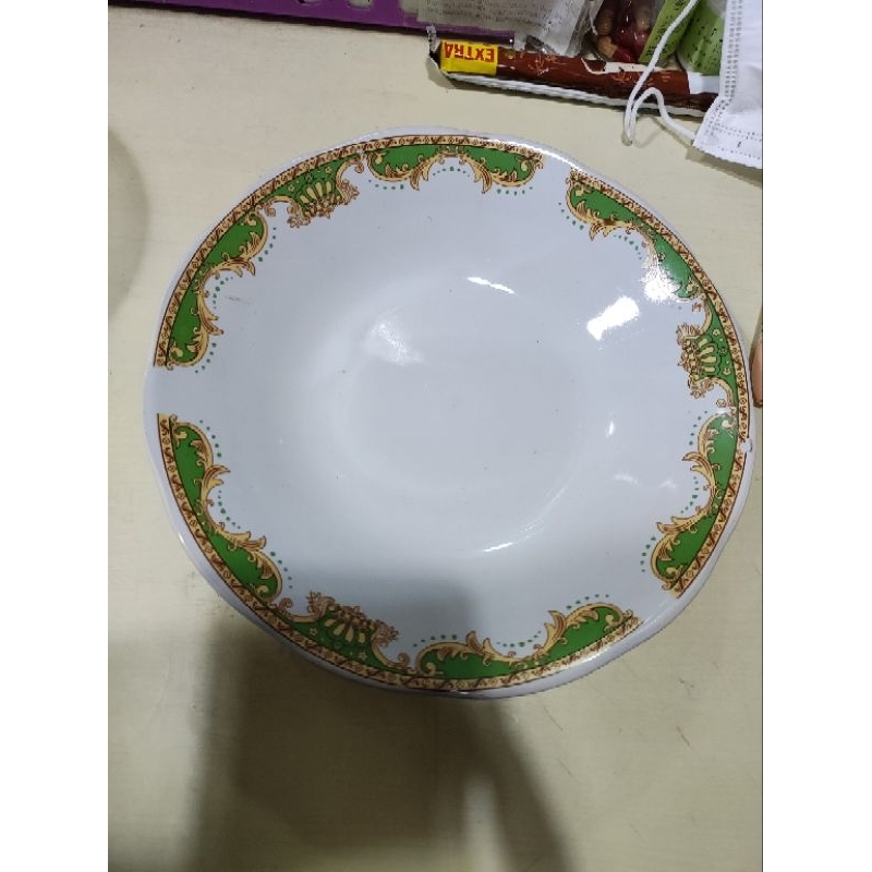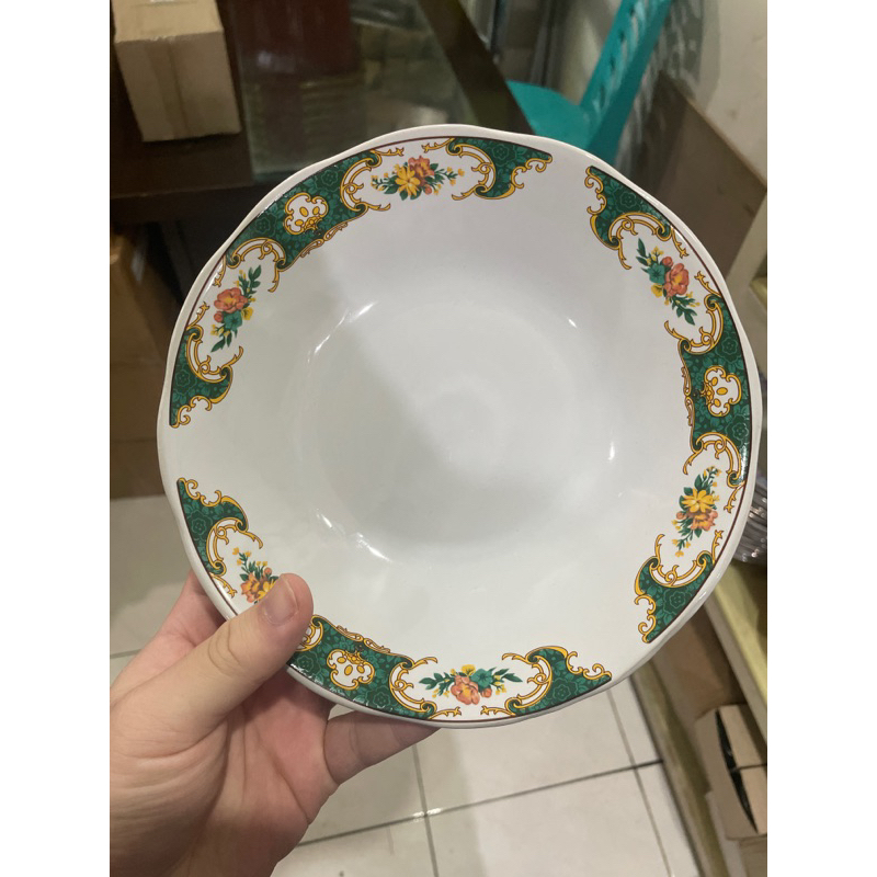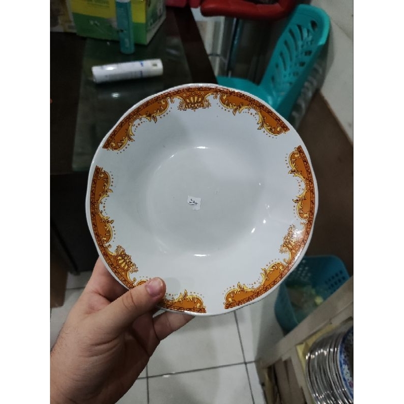 (Isi 6 Biji)Piring Makan Keramik 8 Ll(20 Cm) Bunga / Lis Mas+ Bubble Wrap