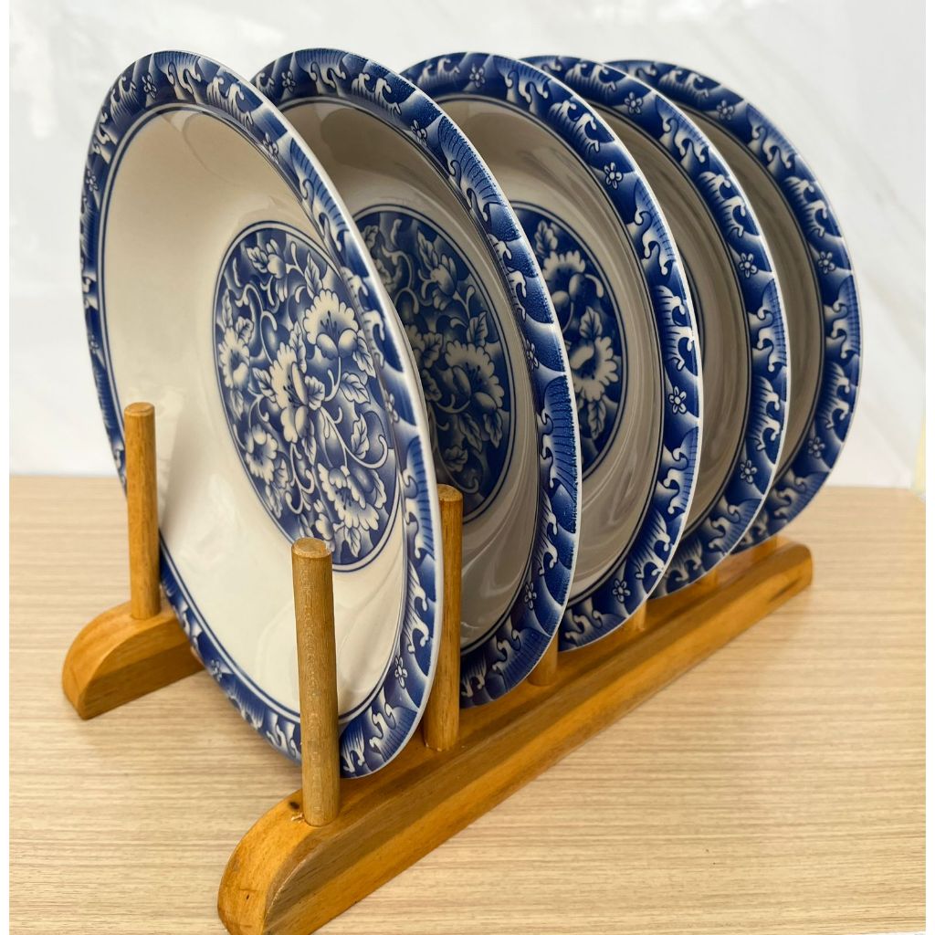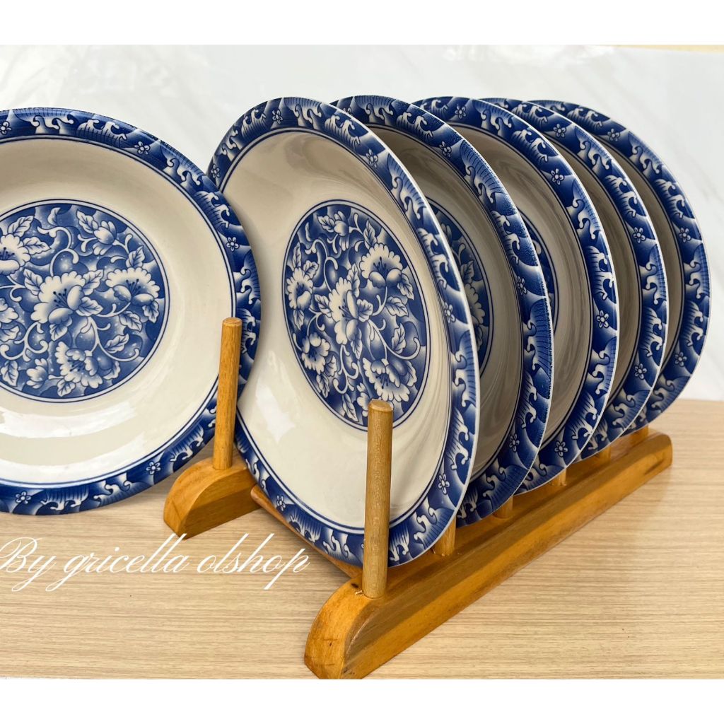 Promo 6 Pcs Piring Makan Keramik Lucky Motif Kembang Biru Diameter 9 Inchi / 22,5 Cm Terlaris