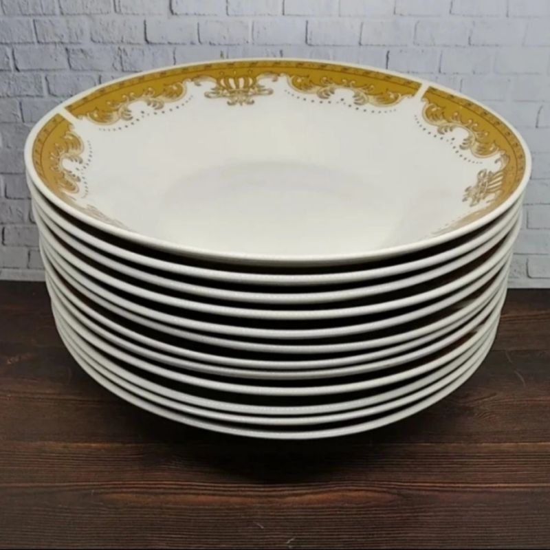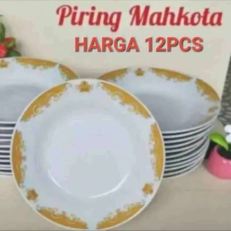 Piring Makan 9 Inch Keramik Porcelen Mahkota 12 Pcs (1 Lusin )
