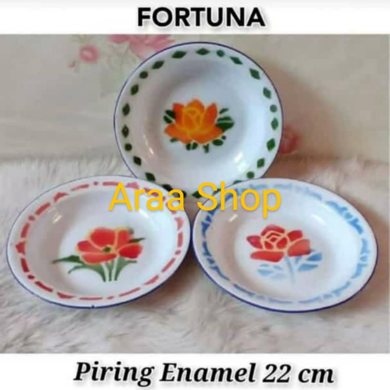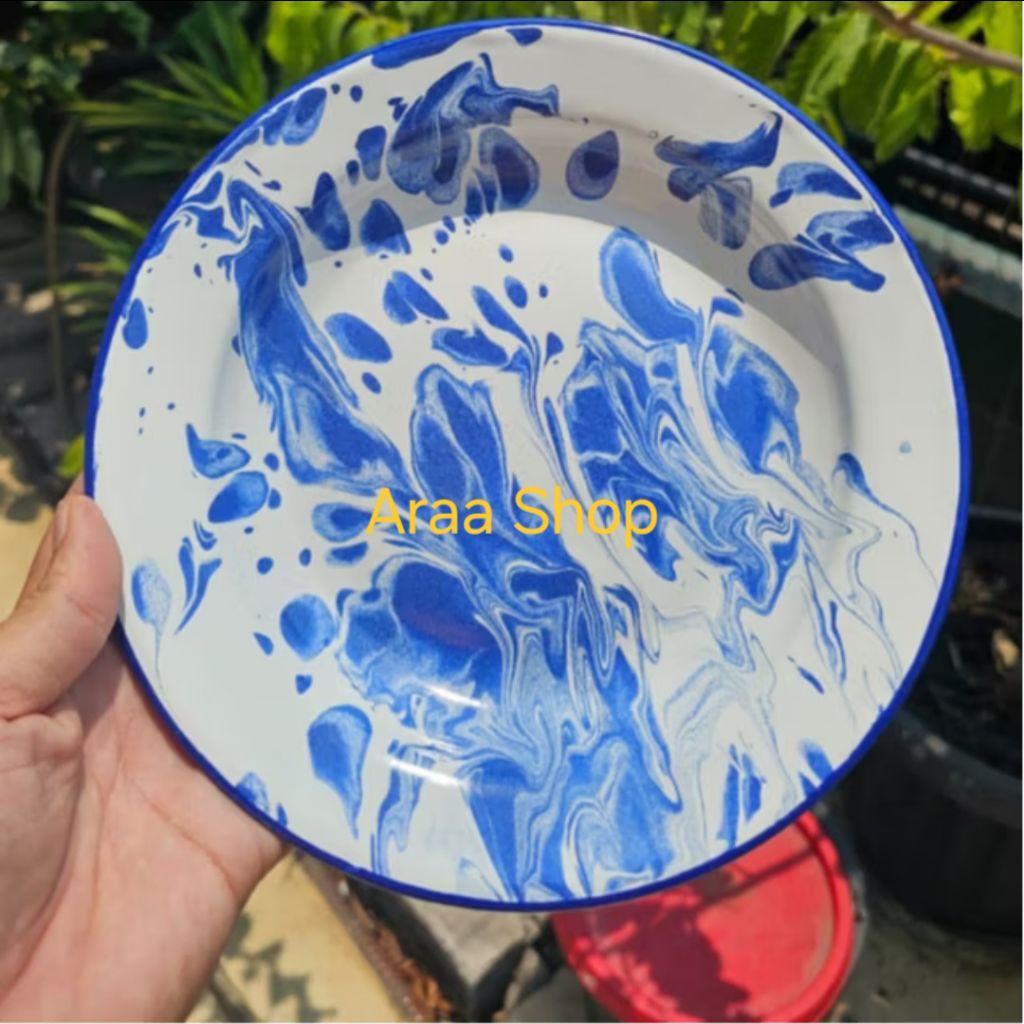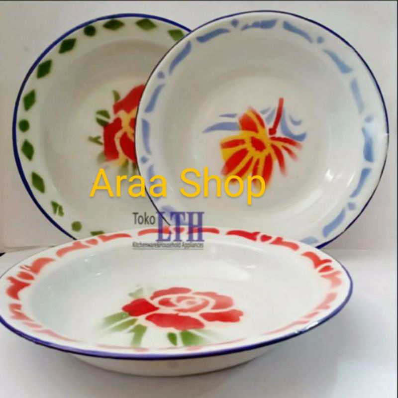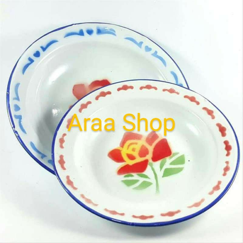 12Pcs Piring Enamel Kembang 22Cm / Piring Makan Jadul Seng Kaleng Belirik Bunga 22 20 18 16 Cm / Piring Makan Bulat Hija